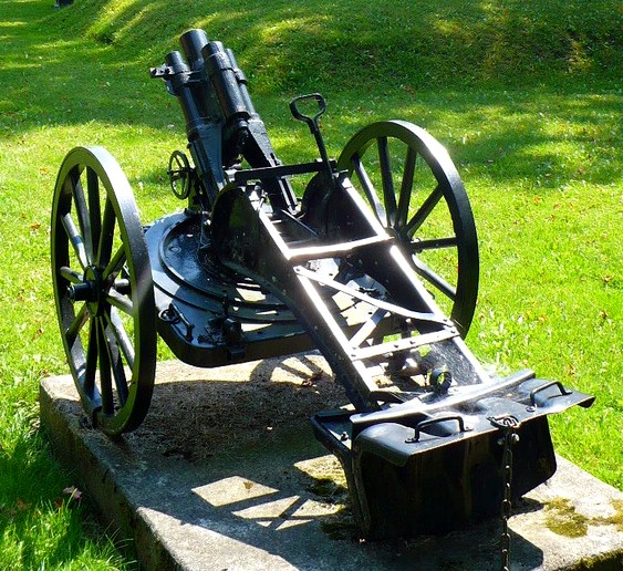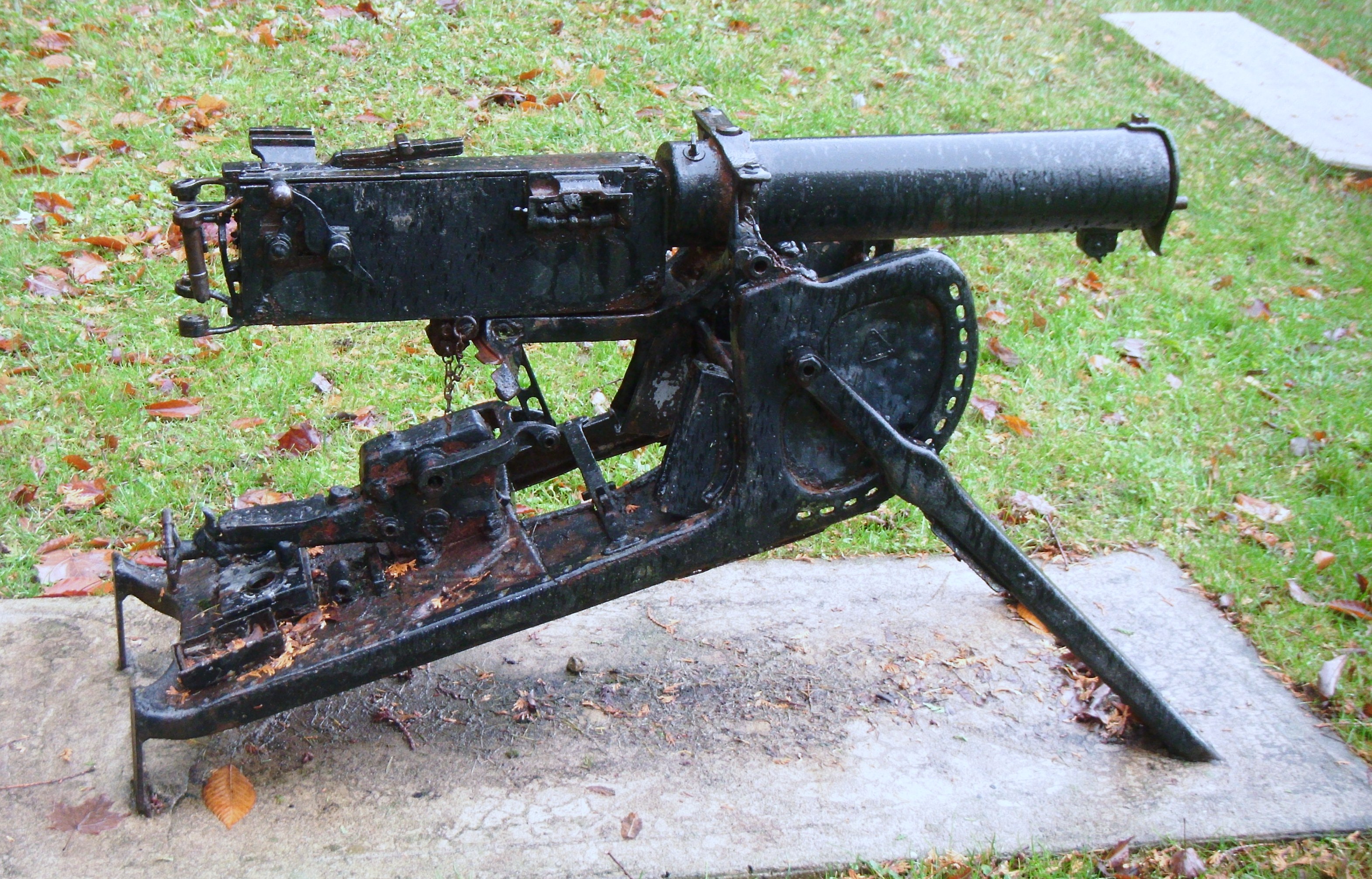 German First World War 7.92-mm Maxim Spandau MG 08 Machinegun, (Serial Nr. TBC), No. 2 of 2 beside the cenotaph at the corner of Colonization Rd and Jessie St.