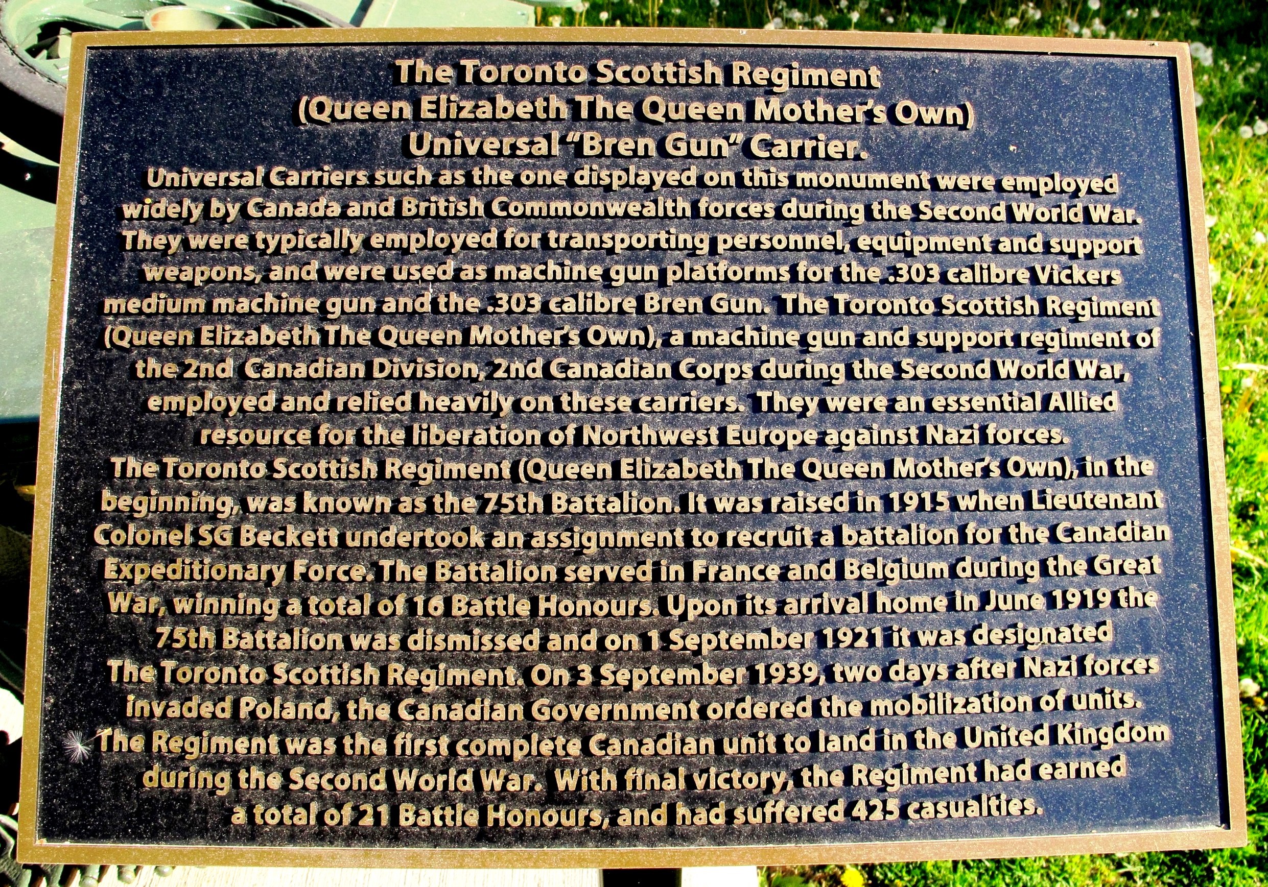 25-pounder C Mk. 2 QF Field Gun with No. 9 circular firing platform, Tac Signs for the Hamilton-Wentworth 11th Field Battery, RCA.  King Street West.