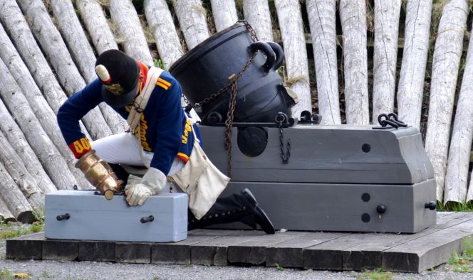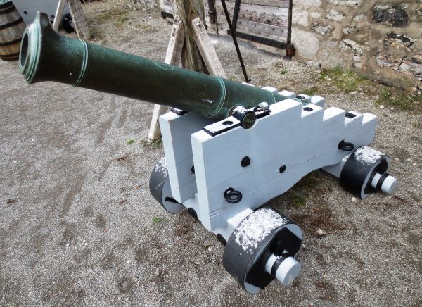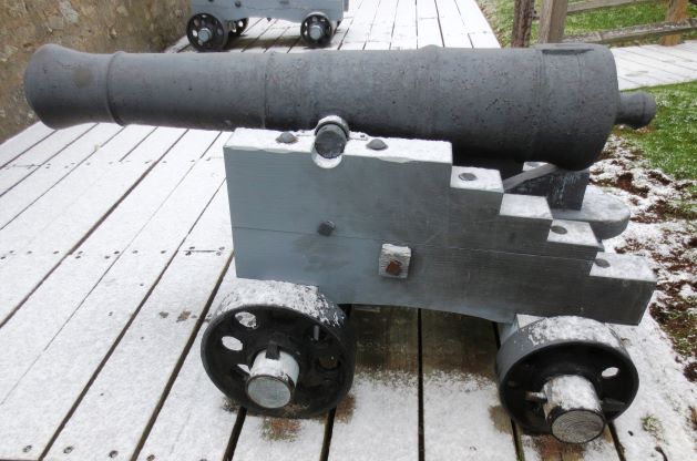 Cast Iron 4-pounder Smoothbore Muzzleloading Gun, 1798 DLCCCVI, reproduction, copied from a piece from Fort York.