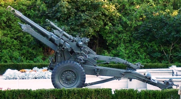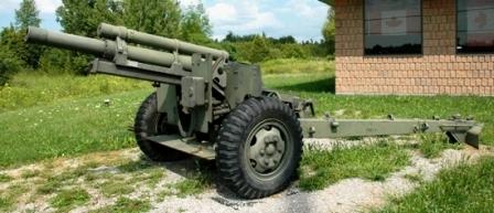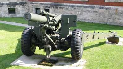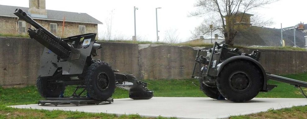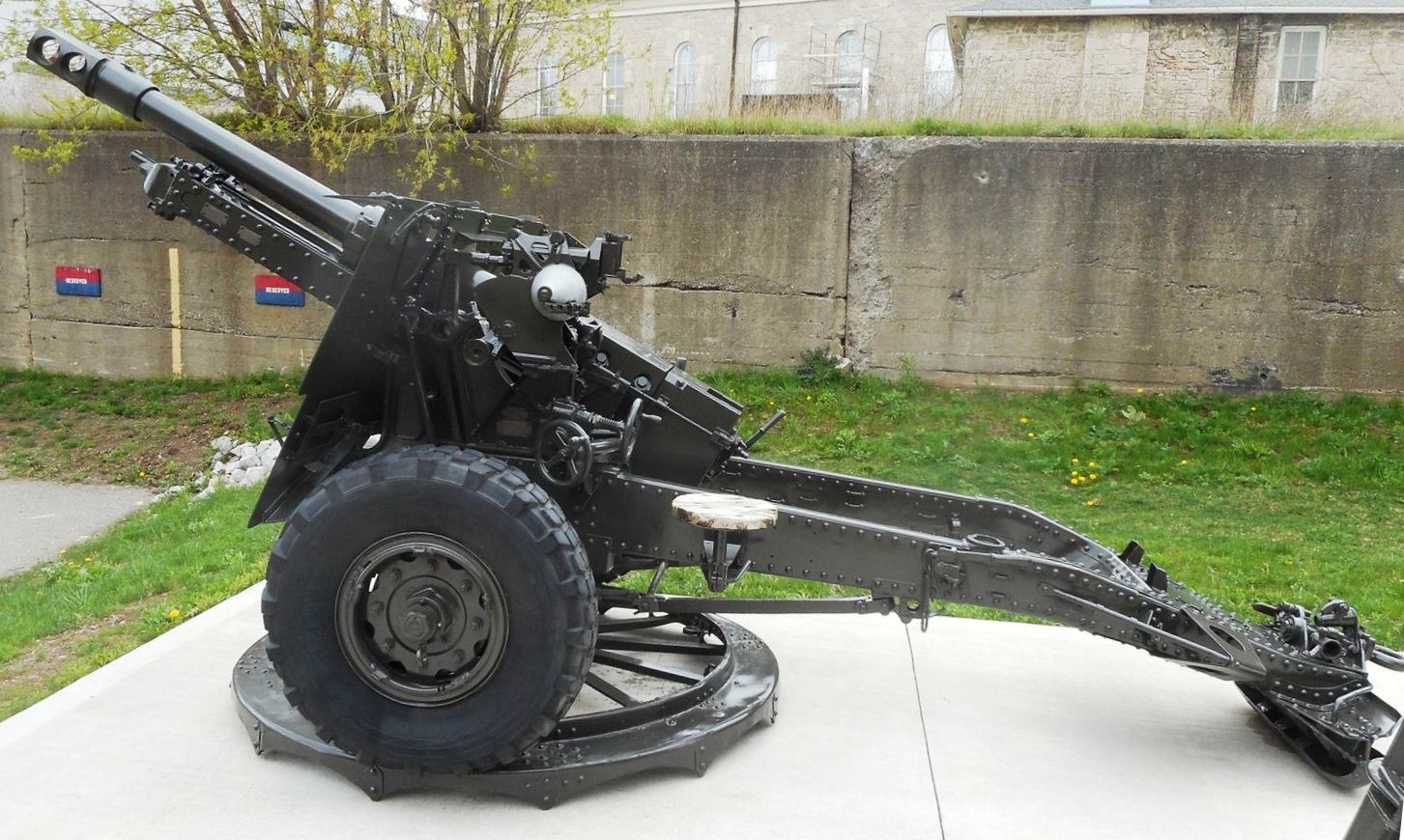 155-mm C1 (M1A2) Medium Howitzer on M1A2 Carriage, aka M114, manufactured at Sorel Industries Limited in Quebec, Queen Elizabeth II cypher. Guelph Armoury, 7 Wyndham St South.