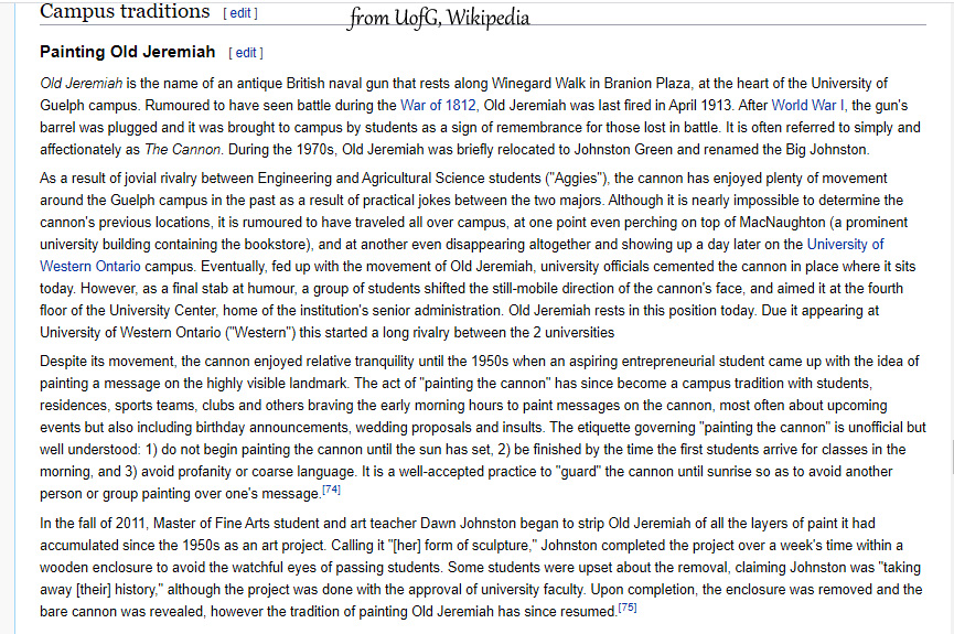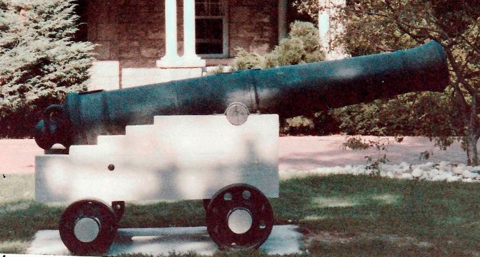 Blomefield Cast Iron 24-pounder 50-cwt Smoothbore Muzzleloading Gun, (>5,500 lbs), King George III cypher, broad arrow mark, ‘Old Jeremiah’ brought to Guelph campus in 1879. This gun is mounted on a concrete stand on University grounds.