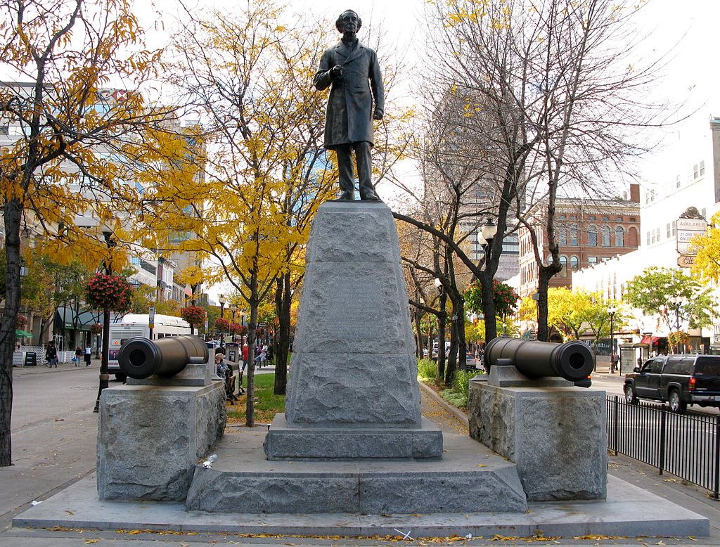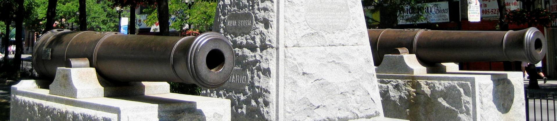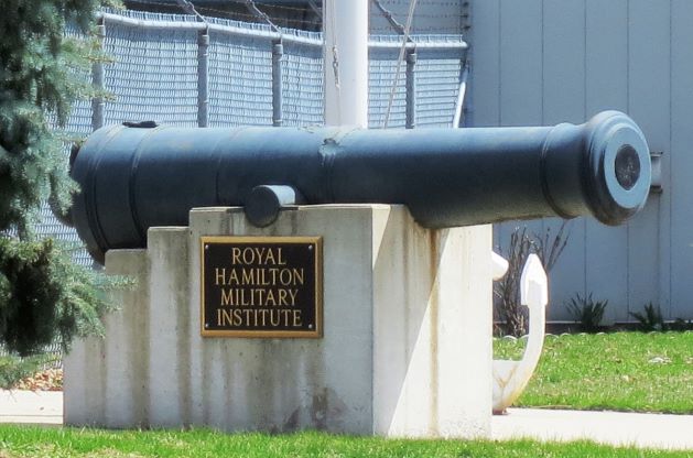 Russian Blomefield pattern Cast Iron 36-pounder Smoothbore Muzzleloading Gun, made by Armstrong at Alexandrovski, with double-headed Eagle, Crimean War trophy. 6.75-inch gun, stamped Armstrong 1837 J68 ½, (Serial No. 25457). Captured at Sevastopol in 1855, given to Hamilton by Queen Victoria in 1860. The Hamilton and District Officers’ Institute mounted the gun as a centennial project in 1967. This gun is now mounted on a concrete stand at HMCS Star.
