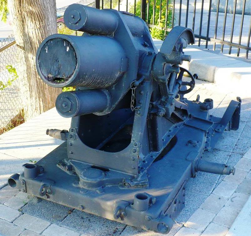Oerlikon 20-mm/70 Twin Anti-Aircraft Guns, previously mounted on a stand on shore, now possibly with the Naval Museum in Calgary, Alberta.