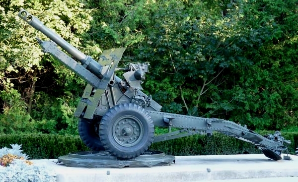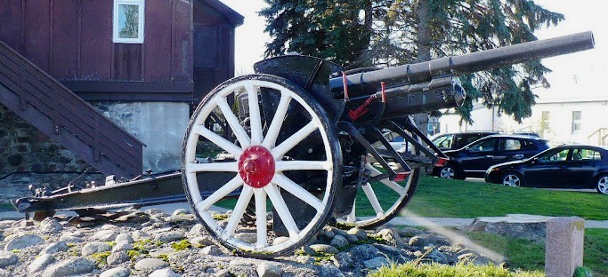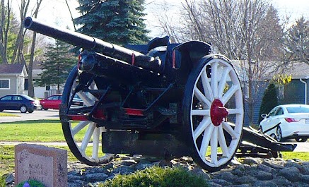 French 75-mm M1897 Field Gun (Canon de 75-mm modèle 1897), mounted on a concrete stand beside the cenotaph.