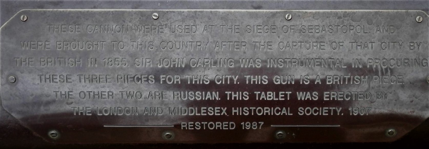 There are three Smoothbore Muzzleloading Guns in Victoria Park (one British and two Russian) presented to Canada by Queen Victoria, standing in front of the Boer War Memorial.