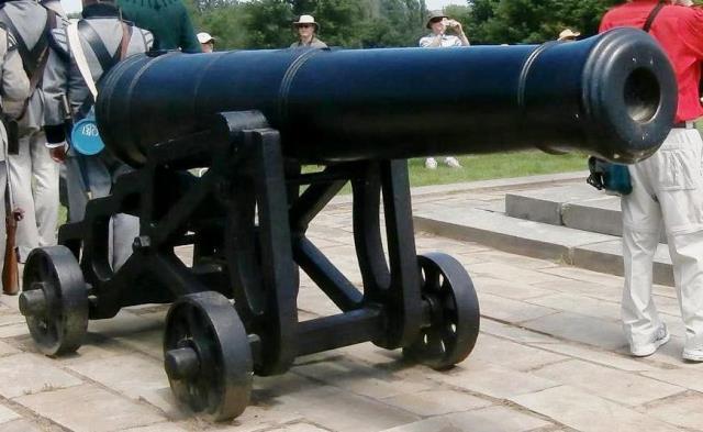 Cast Iron 12-pounder Smoothbore Muzzleloading Gun, No. 2, mounted on a wooden carriage, Centennial Park.
