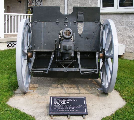 German First World War 7.7-cm Feldkanone 16 (7.7-cm FK 16), (Serial Nr. 9563), L-7586, 1917.  This gun was captured by the 3rd Canadian Infantry Battalion, 1st Brigade of the 1st Canadian Division when the Canadian Corps crossed the Canal du Nord to take Bourlon Wood at Cambrai on 27 September 1918.  Canadian Military Heritage Museum.