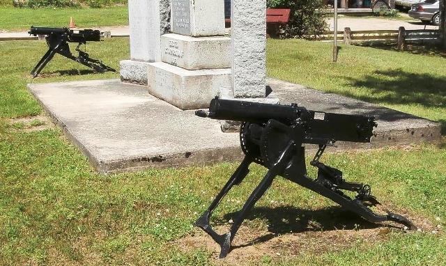 German First World War 7.92-mm Maxim Spandau MG 08 Machinegun (Serial Nr. unknown), no stand, mounted on iron posts as part of the town cenotaph, No. 2 of 2.