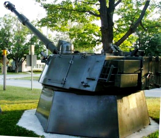 155-mm M109 Self-propelled Howitzer turret on a heavy duty mounting in the War Memorial Park on Hwy 6.