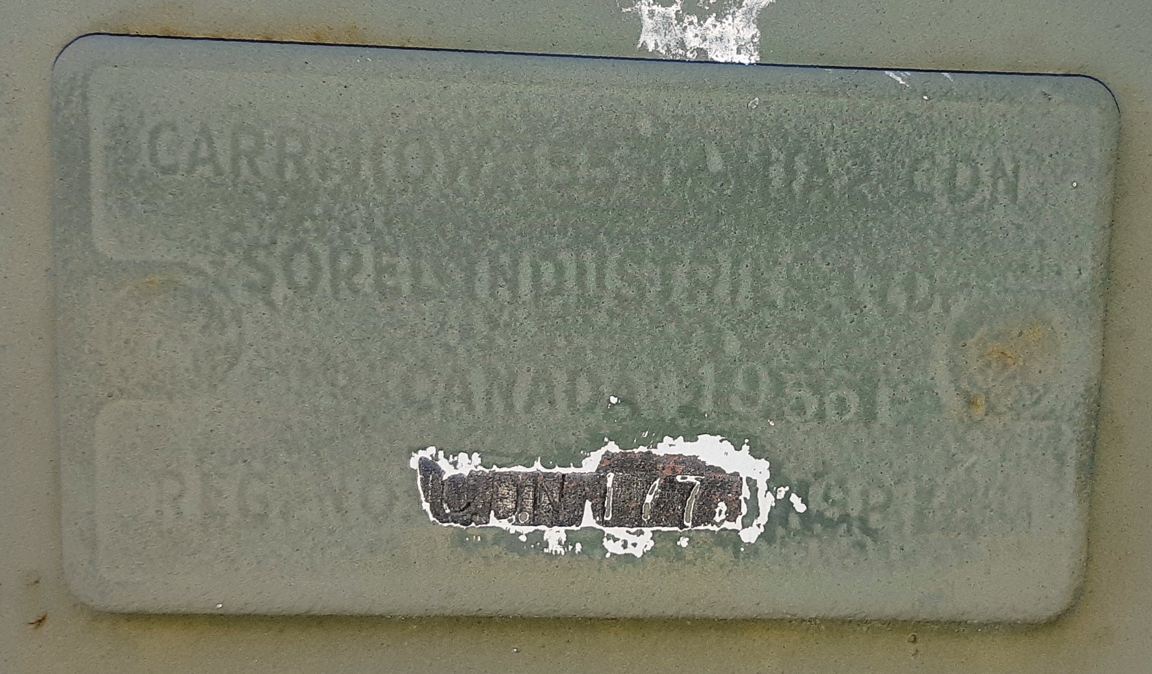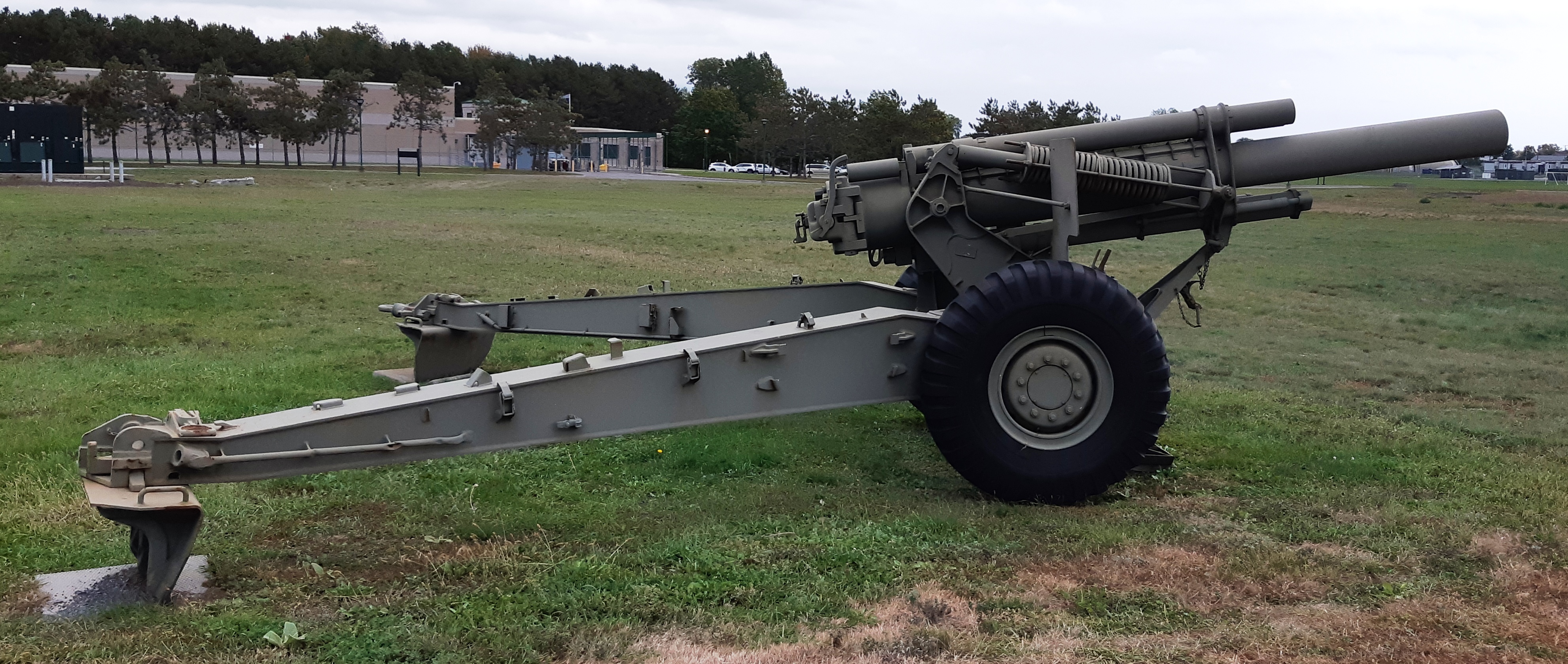 155-mm C1 (M1A2) Medium Howitzer on M1A2 Carriage, aka M114, manufactured at Sorel Industries Limited in Quebec, Queen Elizabeth II cypher.  CFR 34426.  The carriage plate reads: CARR. HOW. 155MM M1A2 CDN. SOREL INDUSTRIES LTD. CANADA (1957 TBC), REG. NO. CDN 177, INSP (Symbol).  This gun was transferred to Ottawa from the Royal Canadian Ordnance Corps Museum, Montreal, Quebec.