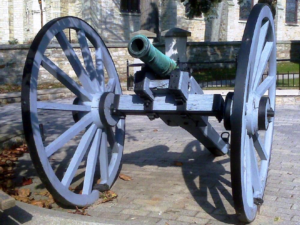 These bronze guns accompanied General John Burgoyne and the British Army in 1777 on his raid from Canada, along the Hudson River-Lake Champlain axis during the American Revolution.   These two 3-pounders arrived in Perth from Kingston in 1822 and were assigned to the Artillery Company of the 1st Regiment Lanark Militia as it was being formed.