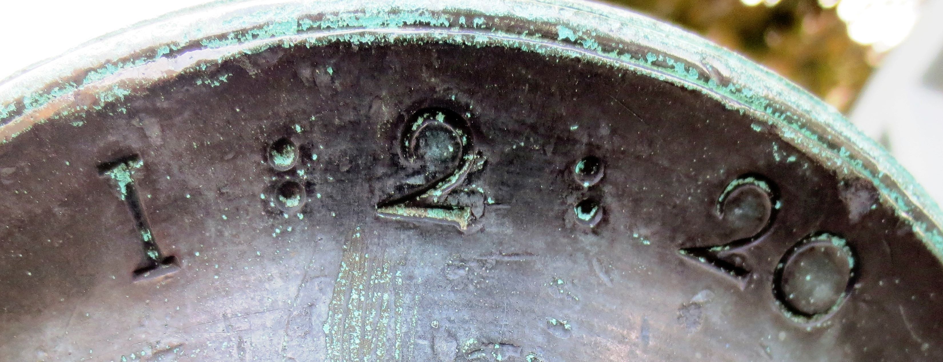 Bronze 6-pounder Smoothbore Muzzleloading Gun, weight –5-21, Kinman, 1796, King George III cypher, broad arrow mark, Serial No. 164, CCIXXIX (228) on reinforcement ring.  Owen Sound Armoury, 10th St E & 8th Ave E.