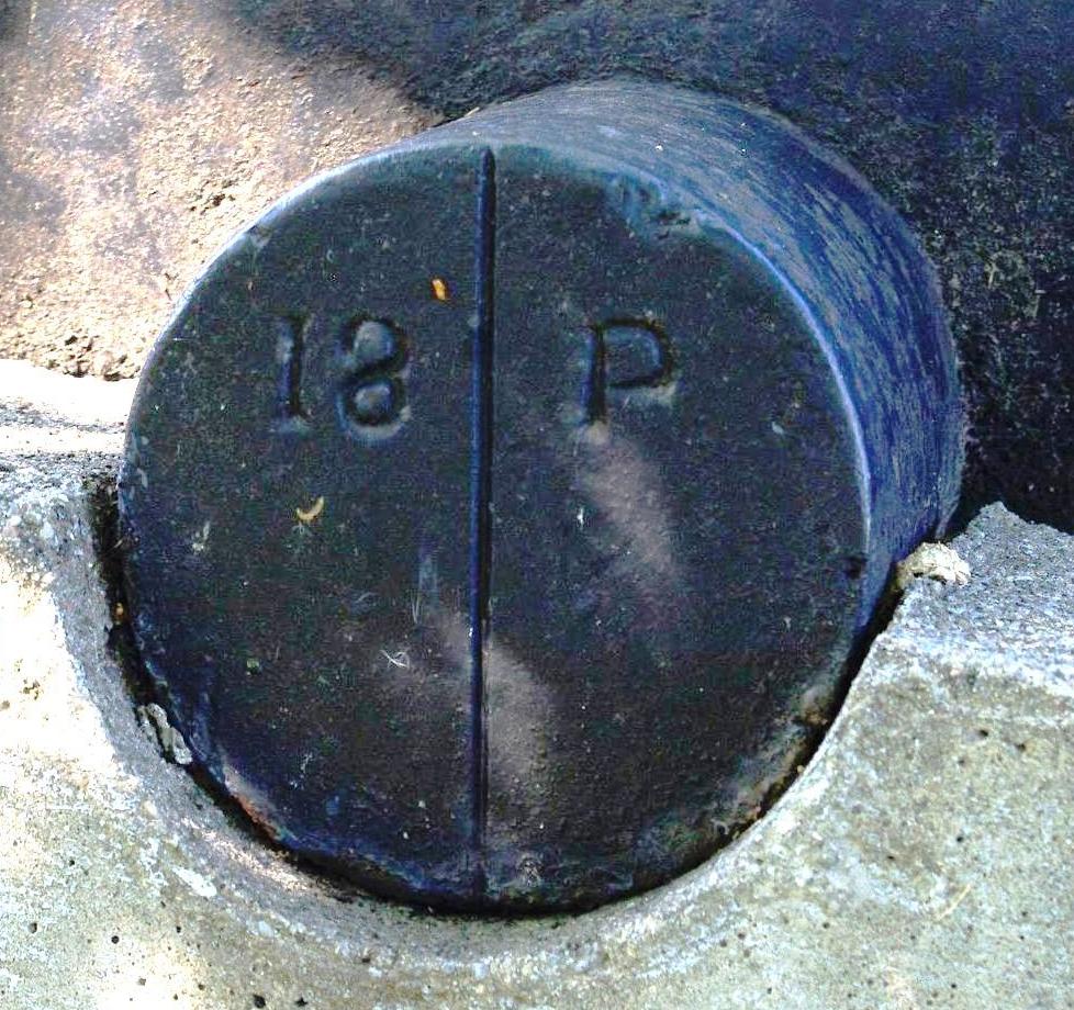 Blomefield Cast Iron 18-pounder Smoothbore Muzzleloading Gun, weight unknown, (Serial No. 79138, CARRON, 1812) on left trunnion, (18P) on right trunnion, mounted on a concrete stand, in front of the Royal Canadian Legion Branch No. 78.