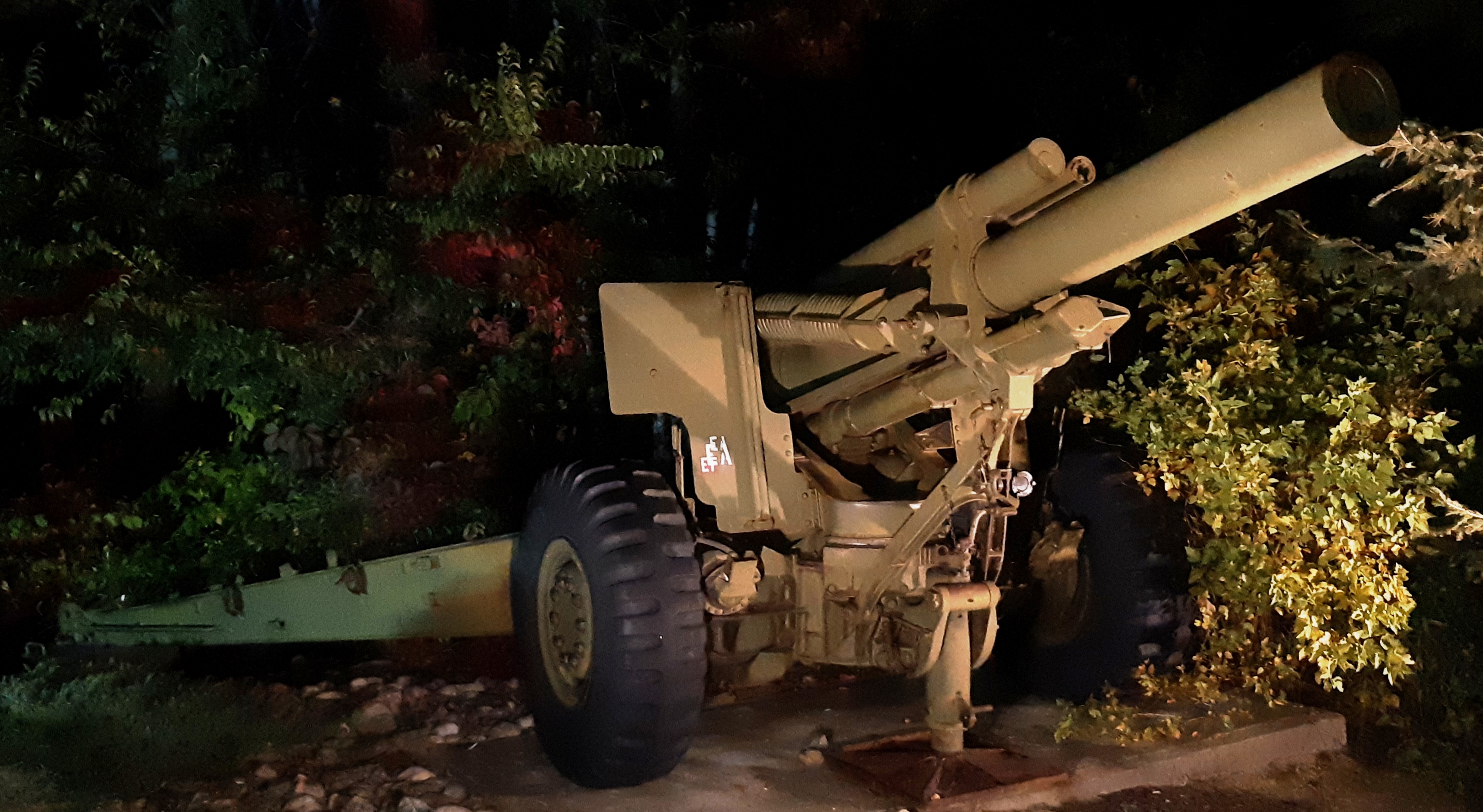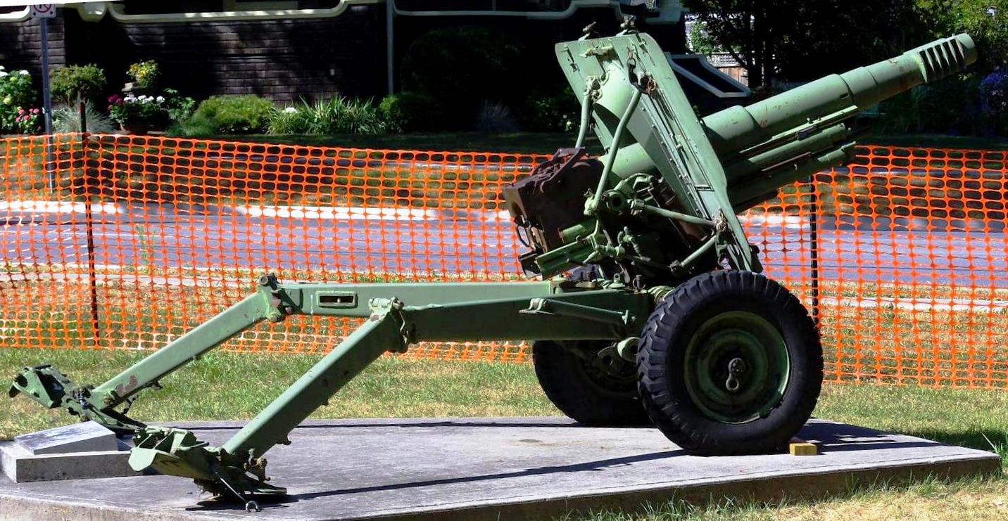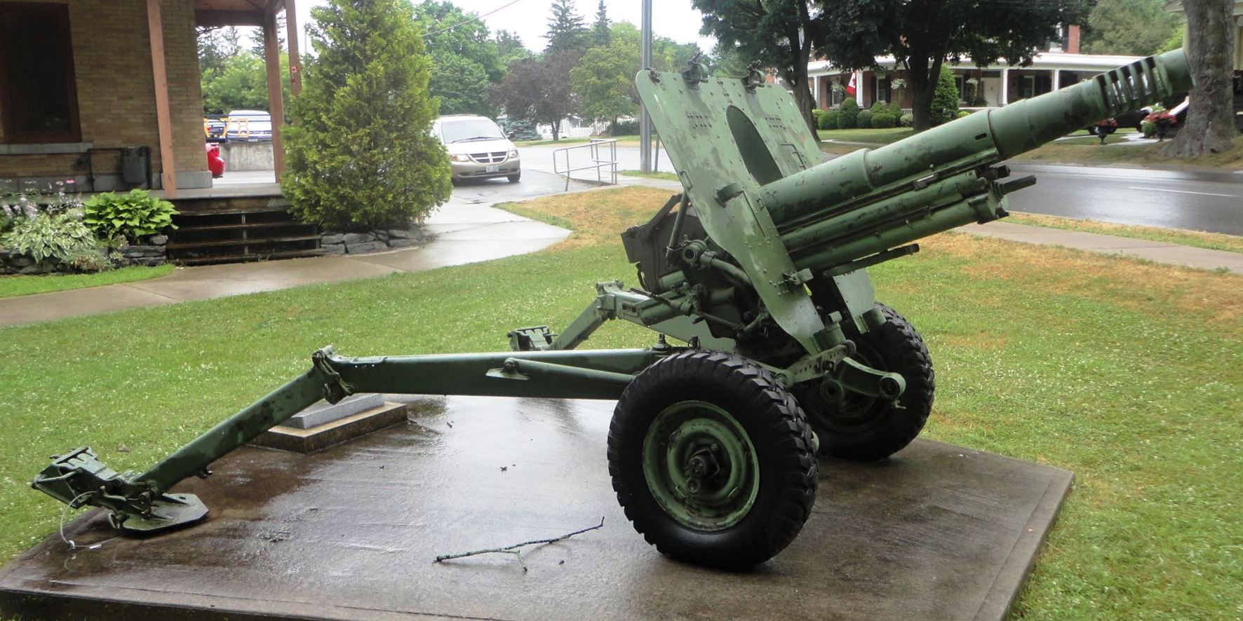 105-mm L5 Pack Howitzer, OTO Melara 1969, (Serial No. 05773), in front of the Royal Canadian Legion Branch No. 78.
