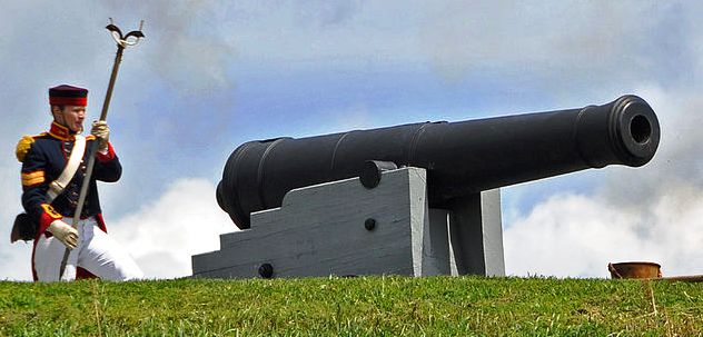 Blomefield Cast Iron 24-pounder 50-cwt Smoothbore Muzzleloading Gun, weight TBC, reproduction, Gunboat display.