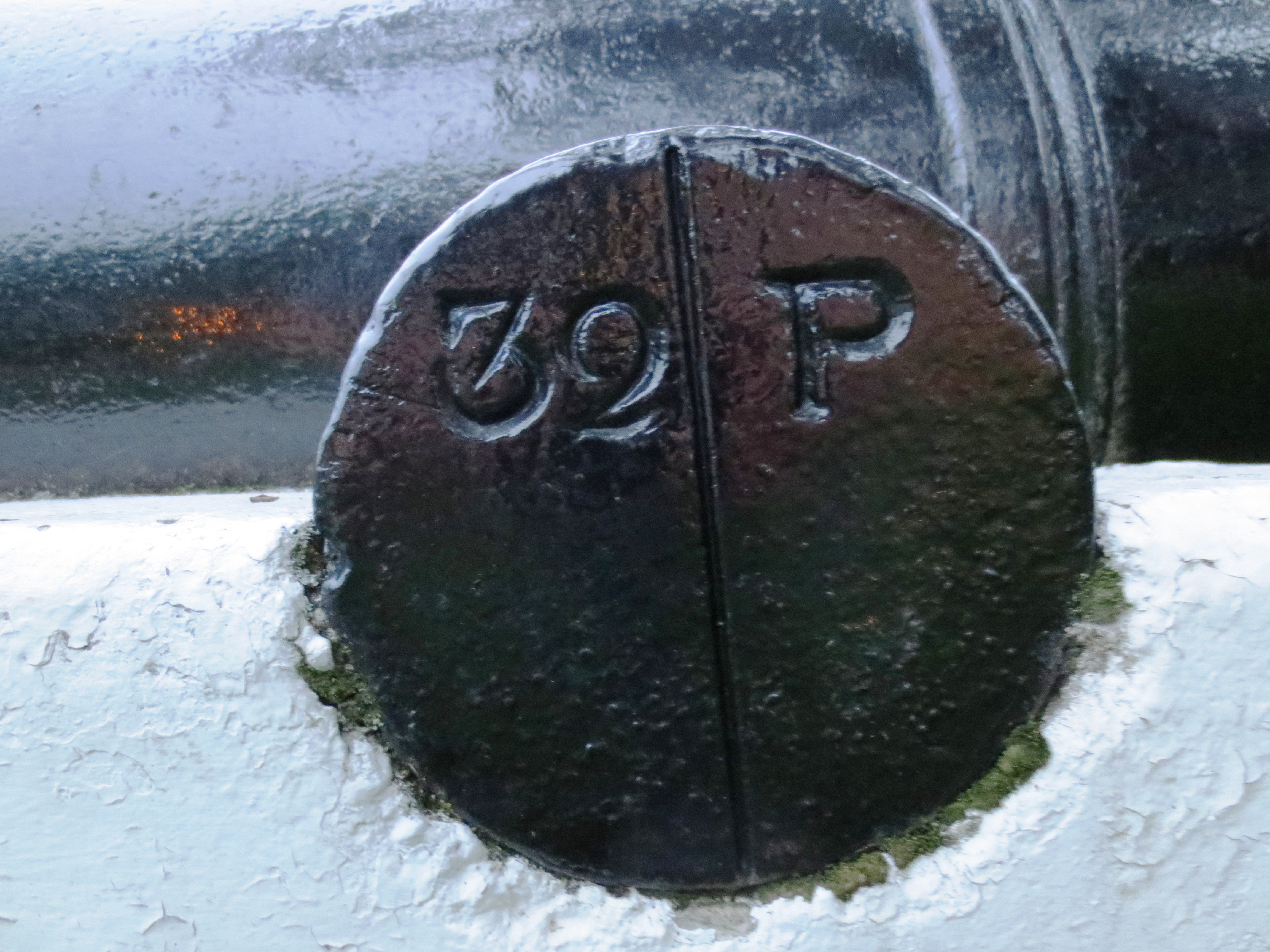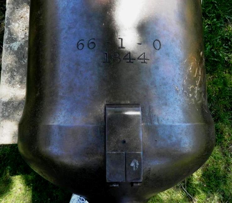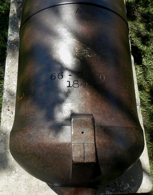 Millar-Dundas SBML 68-pounder Gun, weight 66-1-0 (7,420 lbs), 1844, on the barrel, (Serial No. 2327), mounted on a concrete stand. 1-3, 4)