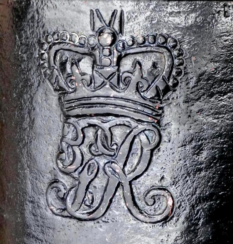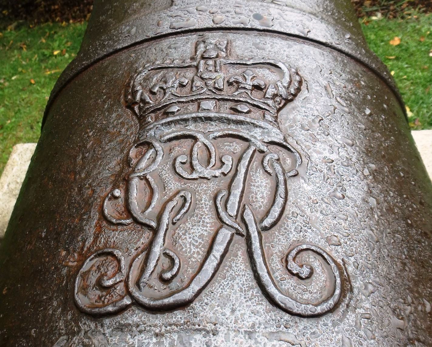 Blomefield Cast Iron 32-pounder 56-cwt Smoothbore Muzzleloading Gun, weight TBC, (WCo) (Walker & Company) on left trunnion, (Serial No. 109) on right trunnion, King George III cypher, broad arrow mark, TV C K.  Queen’s Park.