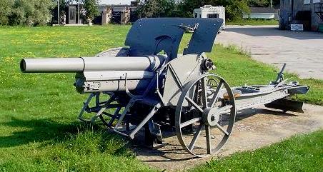 German First World War 10.5-cm leichtes Feldhaubitze 16 (10.5-cm leFH 16), (Serial Nr. 3264).  This gun was captured by the 102nd Battalion and 10th Battalion West of Bourlon Wood, France, on 27 September 1918. Royal Canadian Legion Branch No. 225.  Preserved by the personnel of the Electrical Mechanical Engineers Workshop, 22 Wing, CFB North Bay.  Arte et Marte.