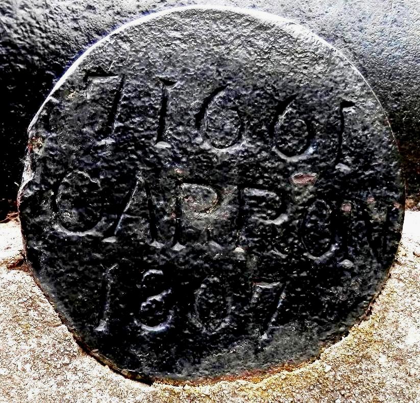 Bronze Smoothbore Muzzleloading 24-pounder Gun, weight TBC, Serial No. 37 on the right trunnion, no cypher, (L) for Low Moor on the left trunnion, CV, N, C above the button.  This piece was cast by the Low Moor Iron Company of Bradford, England between 1790 and 1812.  It is typical of the type used during the Battle of Stoney Creek.