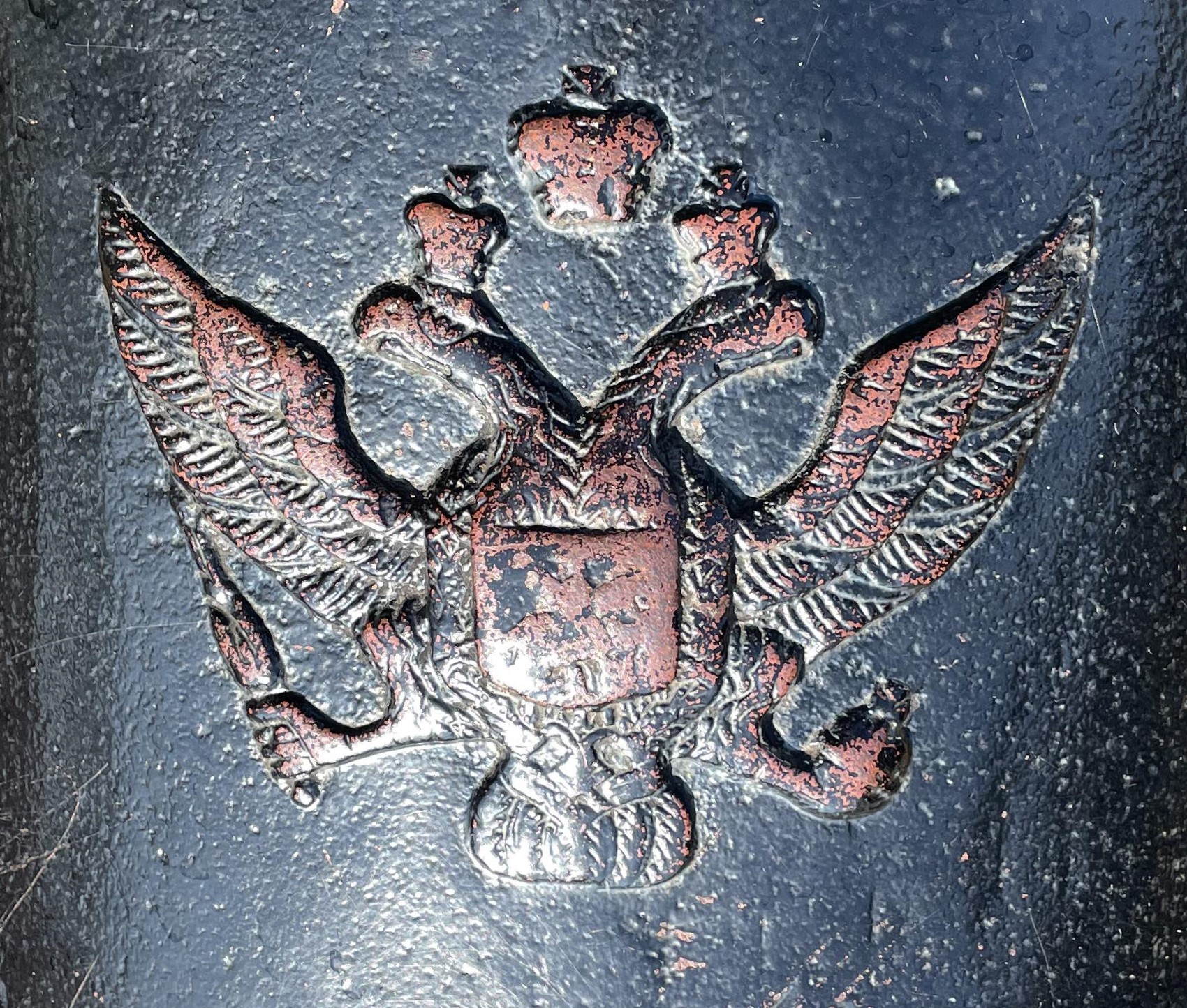 Russian Millar pattern Cast Iron 24-pounder 50-cwt Smoothbore Muzzleloading Gun, (Serial No. 29565), forged by Armstrong at Alexandrovski, with double-headed Eagle, Crimean War trophy, stamped 1845, MA on breech, tv, ck.  Located near the city cenotaph.  The swell on the muzzle is broken.