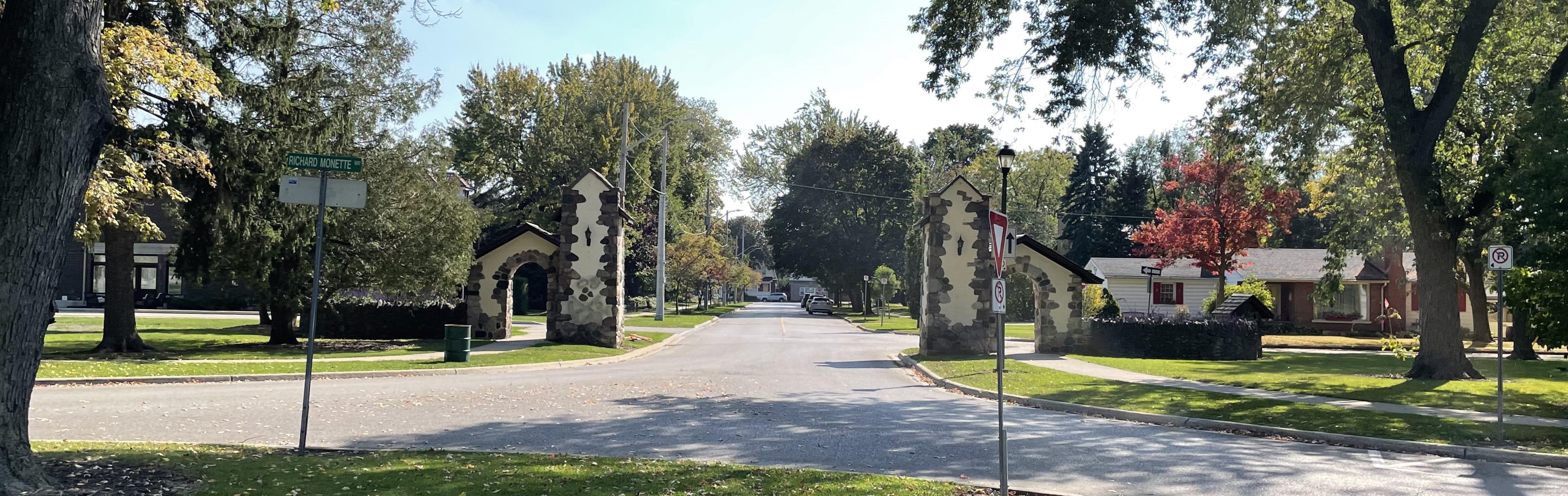 Smith’s Knoll Monument.  During the Battle of Stoney Creek, the American artillery was positioned on a rise of land located north-east of the Gage homestead. Historical records indicate that, following the battle some of the soldiers were buried here in a mass grave. In 1899, Allan Smith, while ploughing on this rise of land, uncovered human remains and bits of cloth with the insignia of both British and American regiments. The area became known in the community as Smith’s Knoll.  On 3 May 1908, an area known as the Soldier’s Plot at Smith’s Knoll was consecrated and by 1910, a stone cairn and statue of a lion were installed. On  1 August 1910, a ceremony was held to mark the unveiling of the Lion’s Monument (as it came to be called) at Smith’s Knoll as a memorial to the soldiers who fought in the Battle of Stoney Creek.  Located across from 69 King Street West.