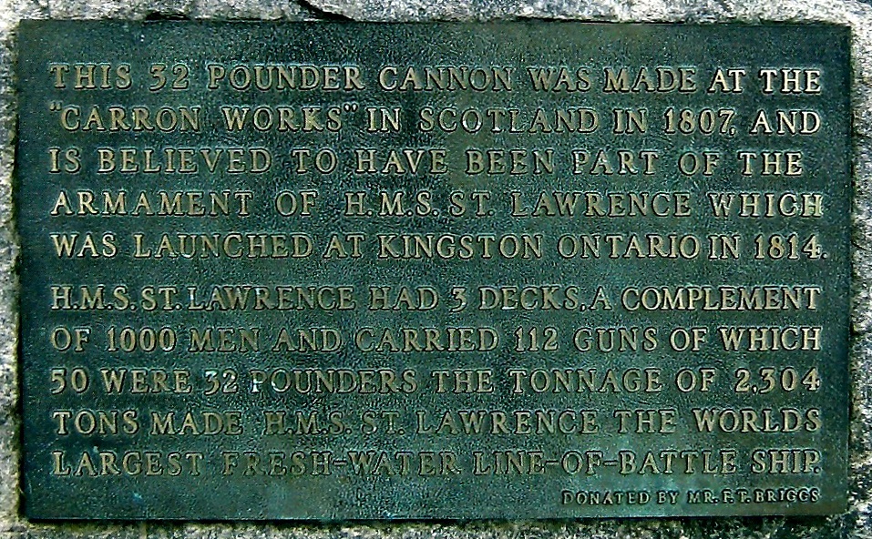 Blomefield Cast Iron 32-pounder Smoothbore Muzzleloading Gun, weight unknown, The Carron Company of Falkirk, Scotland (Serial No. 71618, CARRON 1807) on the left trunnion, (32P) on the right trunnion, King George III cypher, broad arrow mark, unmounted, on the ground at York Cemetery, 160 Beecroft Road.