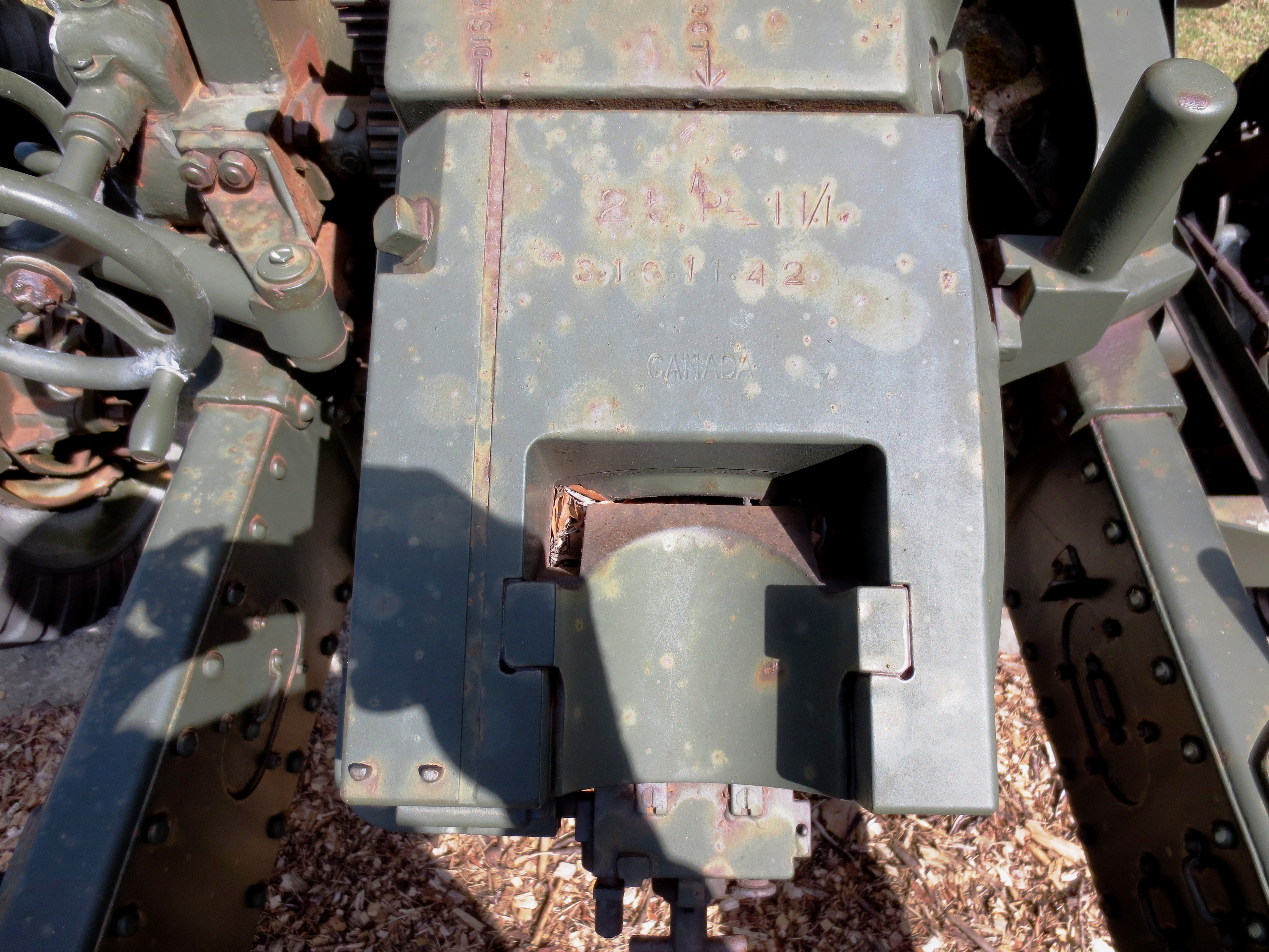 25-pounder C Mk. 2 QF Field Gun with No. 9 circular firing platform, S.I.L. 1942, Reg. No. CA10612. 625 Birchmount Road.