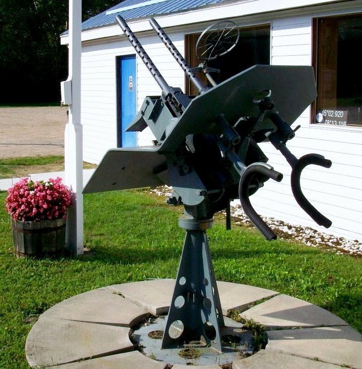 Dual .50-calibre Anti-Aircraft machine guns.  Cradle & Shield Mark 14, Serial 27472.  Royal Canadian Legion.
