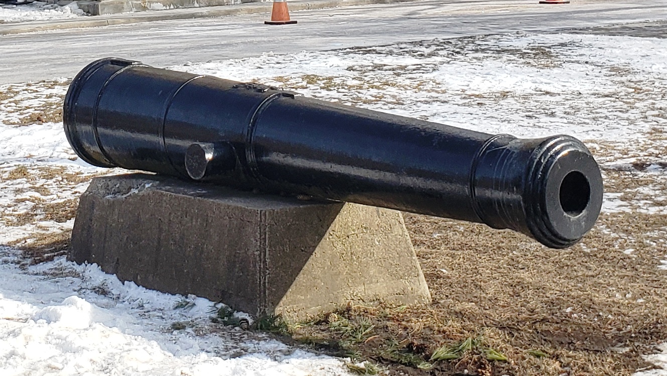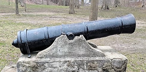 Cast Iron 3-pounder SBML Gun, mounted on a concrete stand, near the Gazebo in Waterloo Park. The cannon was cast in Waterloo at the Bricker and Booth Foundry. For years it was fired for events such as Victoria Day. However several accidents including a death led to the end of these celebrations. The cannon was eventually moved to Waterloo Park around 1903.