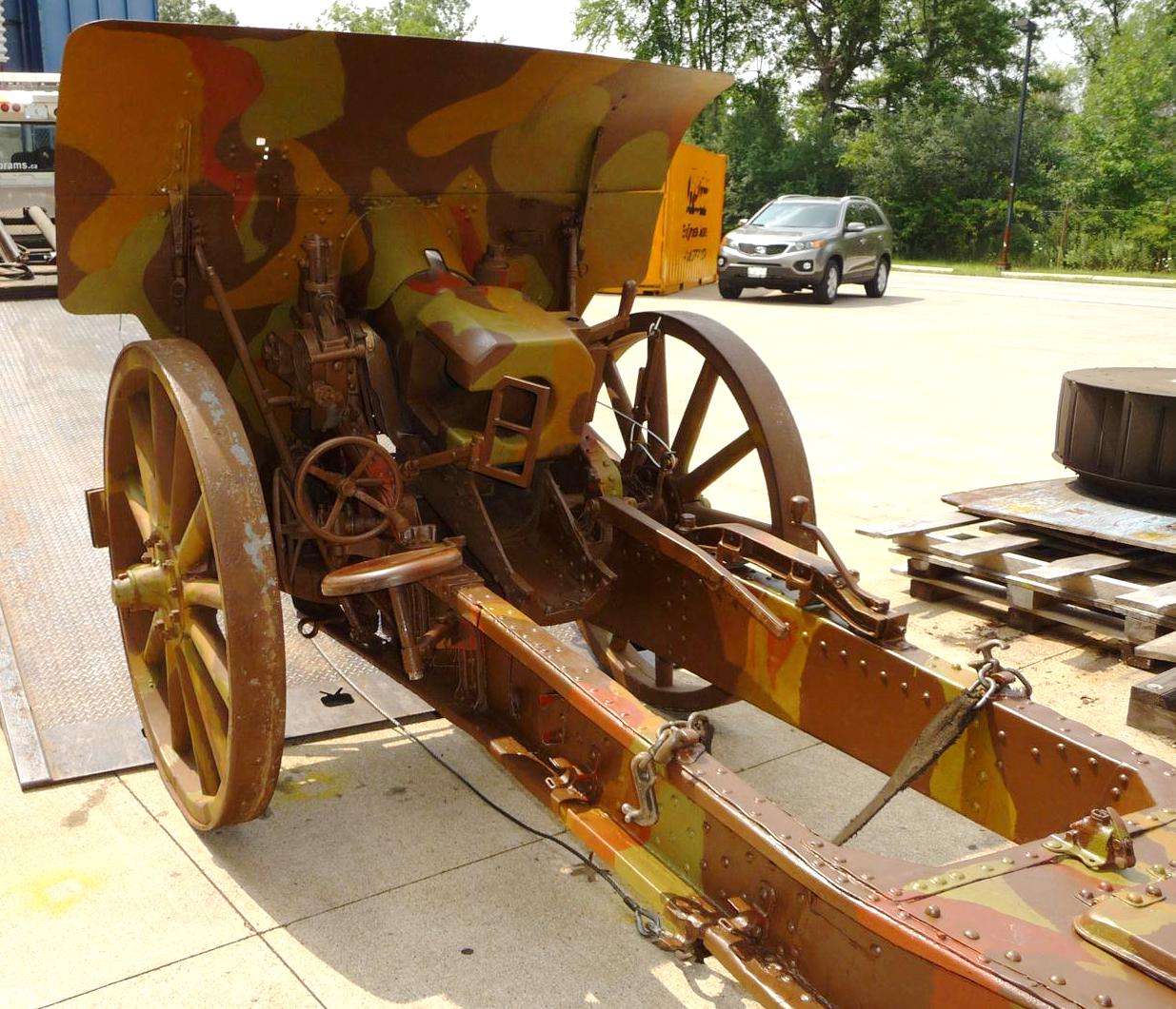 German First World War 7.7-cm Feldkanone 96 neuer Art (7.7-cm FK 96 n.A.), possibly (Serial Nr. 4451), captured by the 1st Battalion on 27 September 1918, East of Sainz-lez-Marquion.  Currently being restored at St Clair College.
