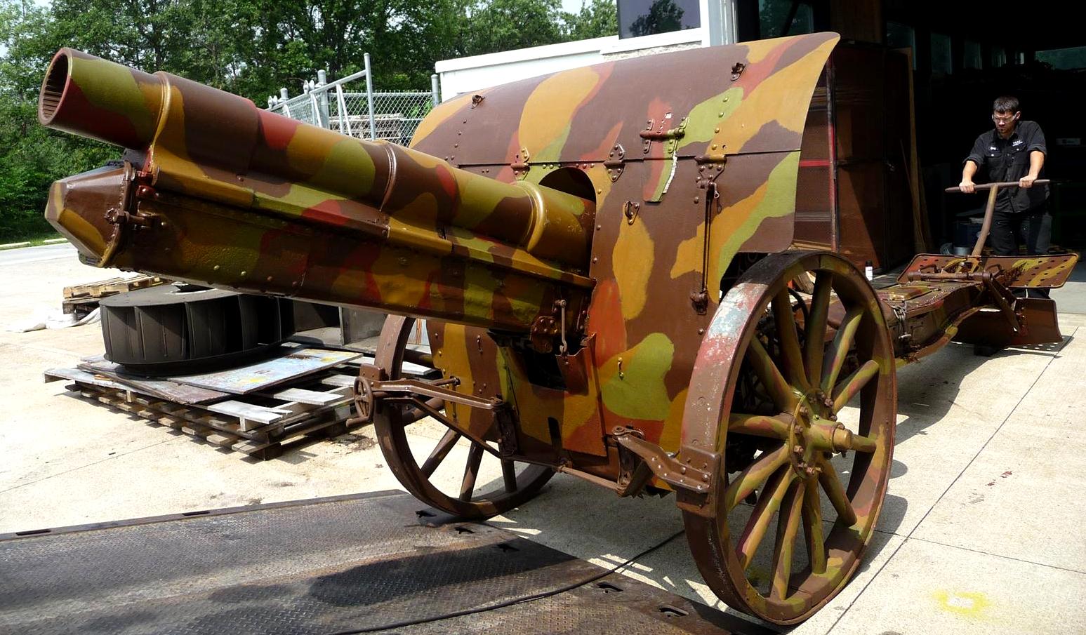 German First World War 15-cm schwere Feldhaubitze 13 (15-cm sFH 13), (Serial Nr. 125), TBC, salvaged by the 2nd Division Southeast of Bois de Bouche, near Cagnicourt by No. 2 Section, 1 CDAC.  It is now on display with the Essex and Kent Scottish Regiment at Sandwich Street.