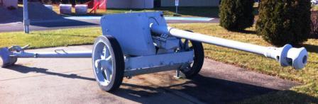 German Second World War 7.5-cm PaK 40 AT Gun (Serial Nr. unknown), in front of the WO and Sgt’s Mess, L-110, on Royal Ave beside the MP building.