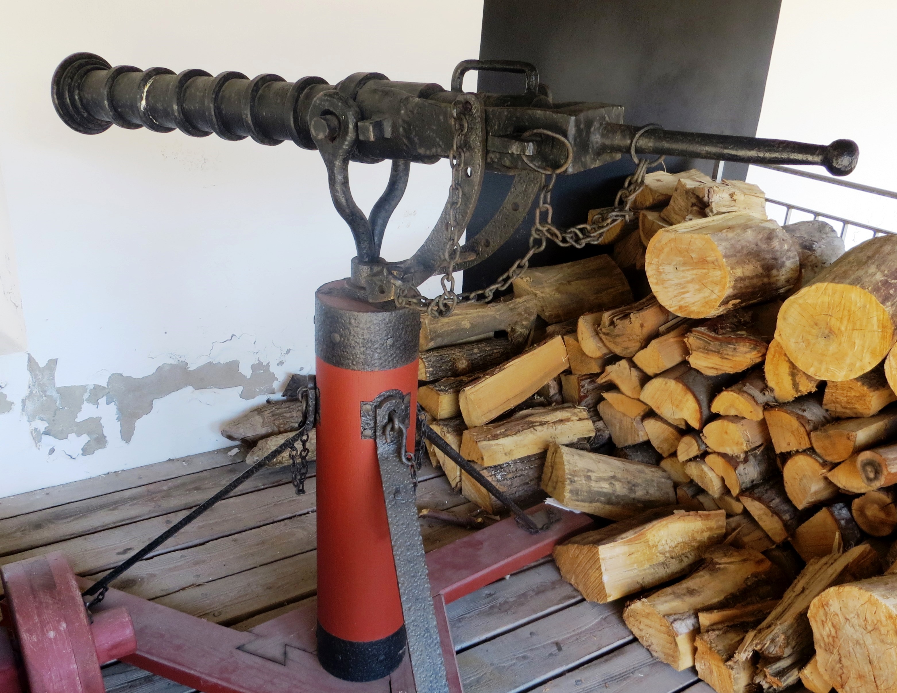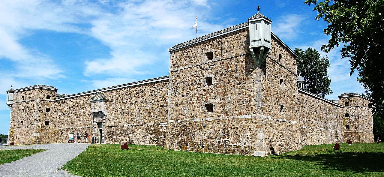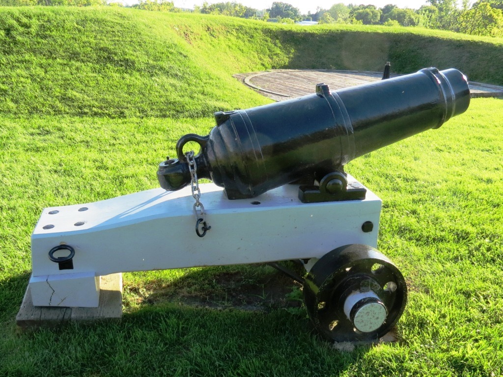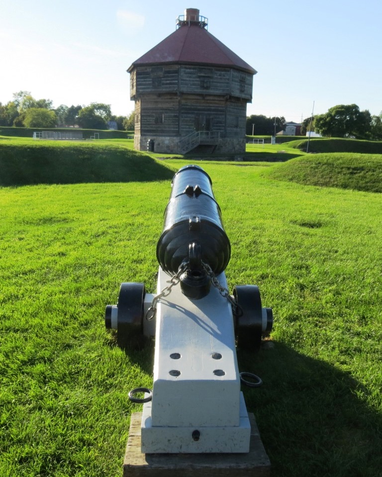 Smoothbore reinforced breech-loading swivel gun, of a kind that was invented in the 14th century.  They were loaded by inserting a mug-shaped chamber already filled with powder and projectiles (technically pieces of metal, and yes stone cannonballs were used as ammunition).  The breech-loading swivel gun had a high rate of fire, and was especially effective in repelling boarders and pirates on ships.  The earliest versions were made from strips of metal held together with reinforcing bands – and the real ones from the earliest voyages of explorers to Canada are quite rare, so the one at Fort Chambly may be a replica.  The Portuguese made great use of them off Canada’s East coast.