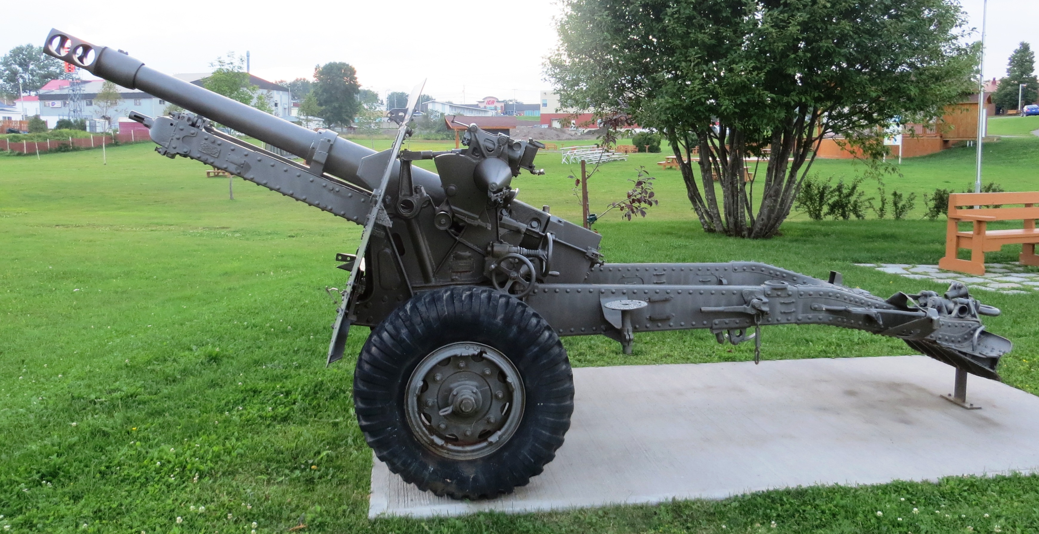155-mm C1 (M1A2) Medium Howitzer on M1A2 Carriage, aka M114, manufactured at Sorel Industries Limited in Quebec, Queen Elizabeth II cypher.  CFR 34409.  The carriage plate reads: CARR. HOW. 155MM M1A2 CDN. SOREL INDUSTRIES LTD. CANADA (year unknown), REG. NO. CDN 181, INSP (symbol).  Royal Canadian Legion Branch No. 99.