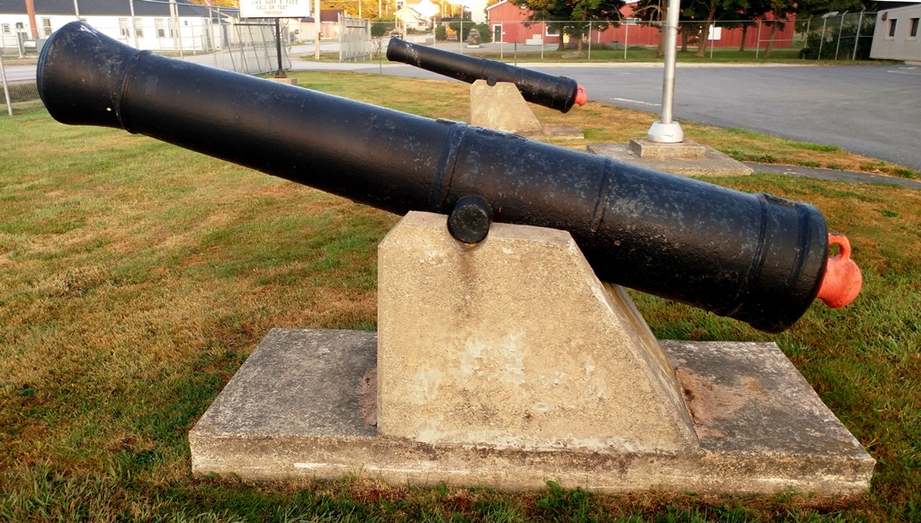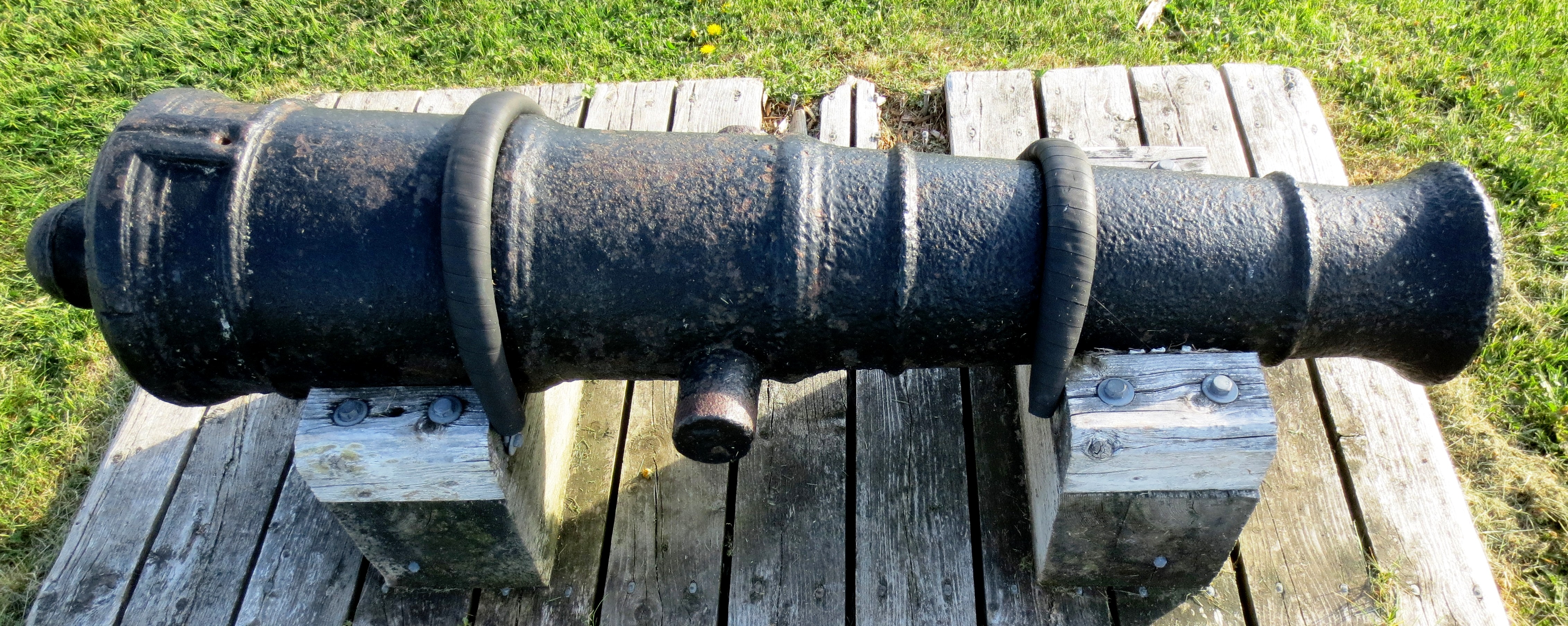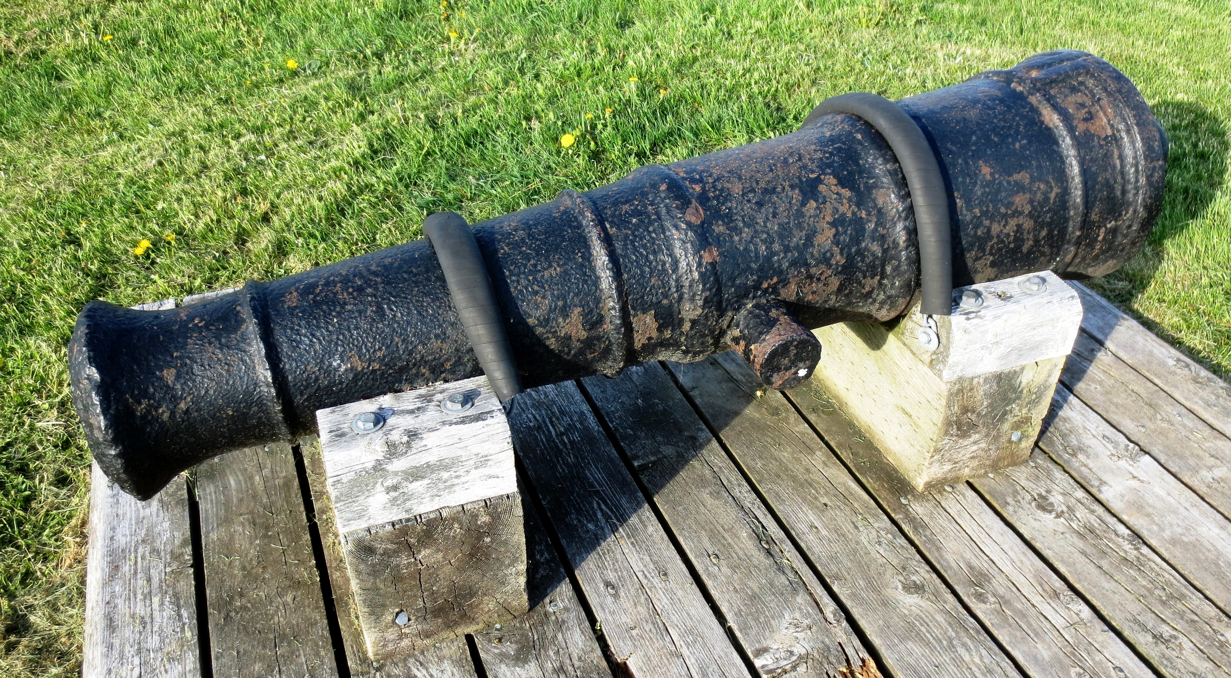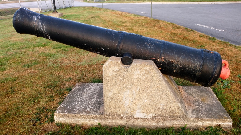 Cast Iron 4-pounder Smoothbore Muzzleloading Gun, (1,400 lbs+), 4-feet, 6-inches long, ca. 1800 to 1820, No. 2 of 2, West of the blockhouse.