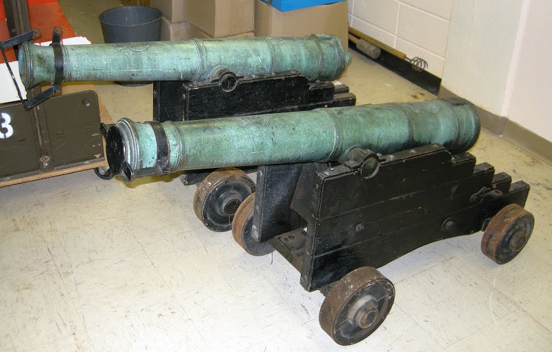 Chris Harvey-Clark has noted that in the last few years a third cannon has emerged from the earth there, looking similar in pattern to the other 2 with the same escutcheon. There is also a fragment of a fourth cannon, breech and part of trunnion, which must have blown up. Apparently they were used for signalling prior to effective foghorn signalling to alert vessels at sea.