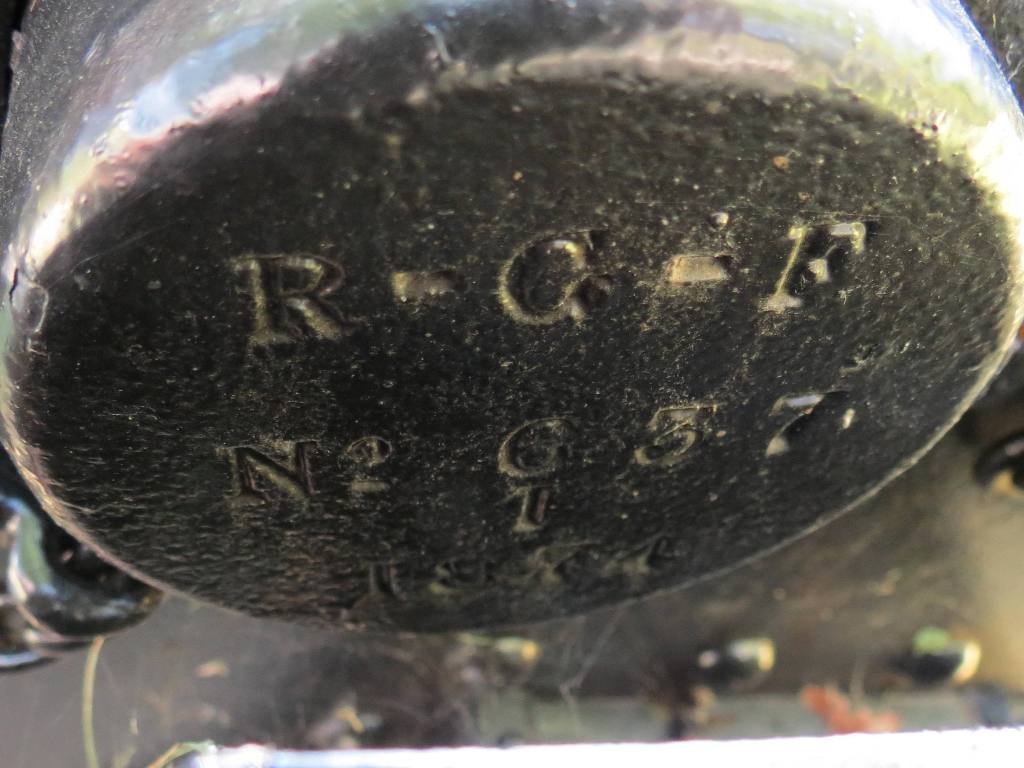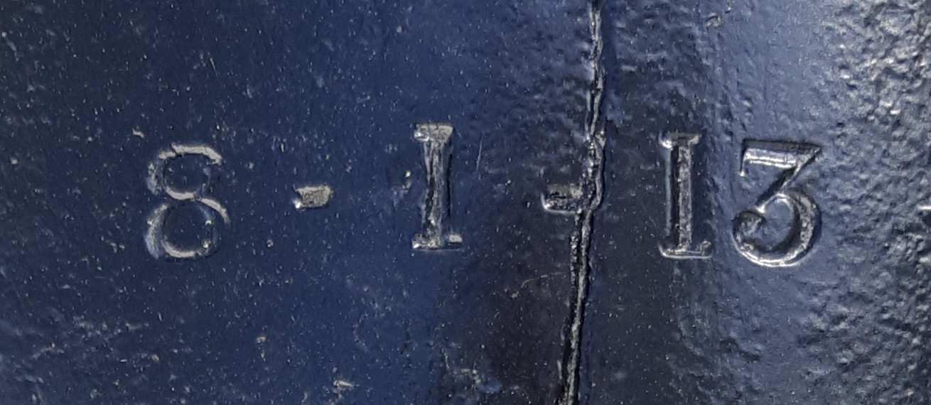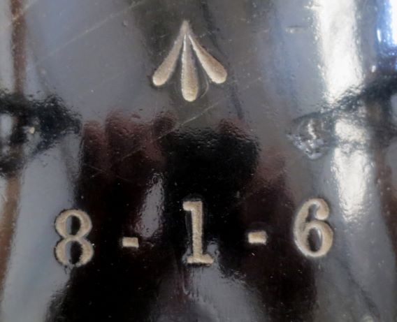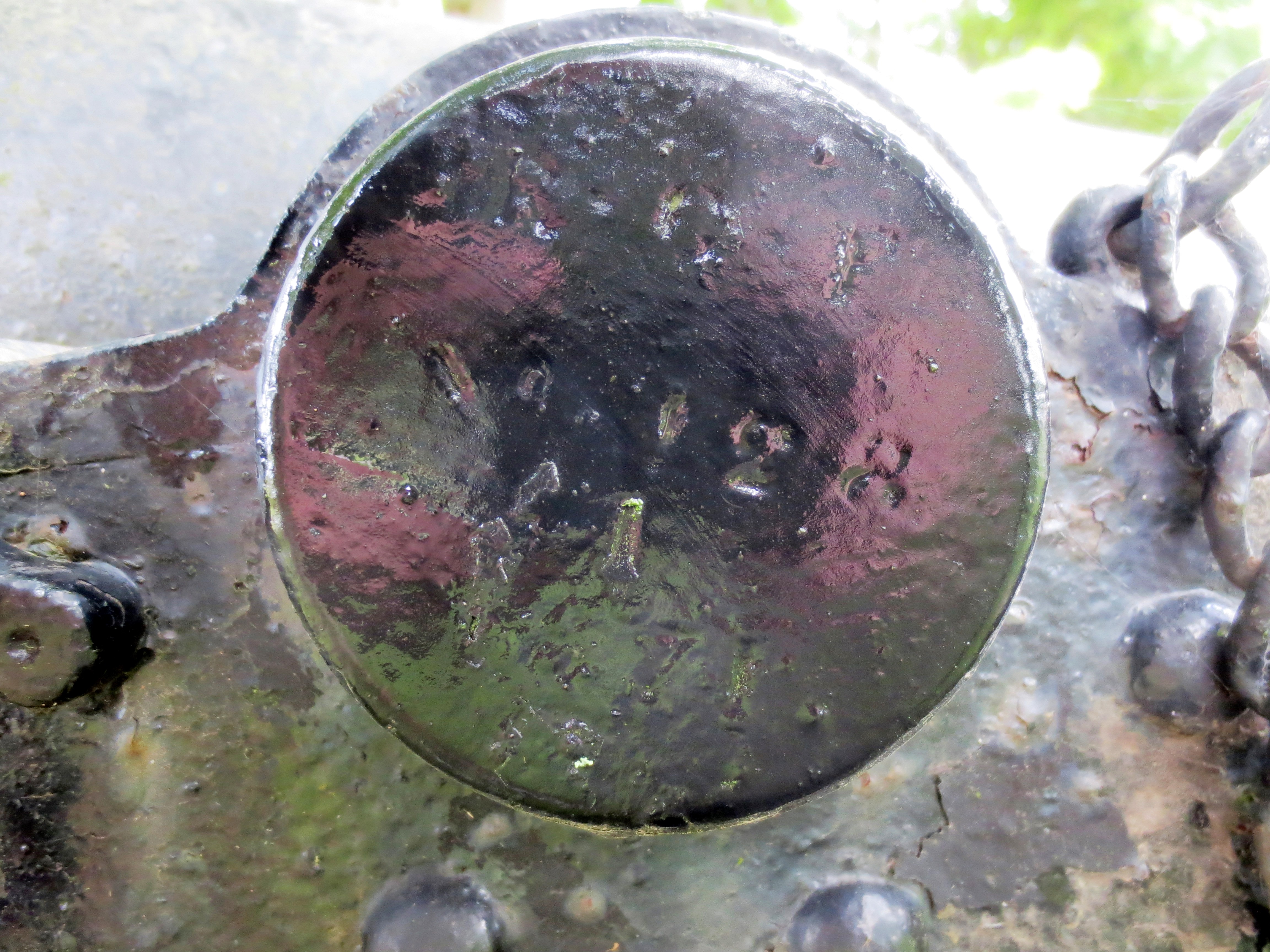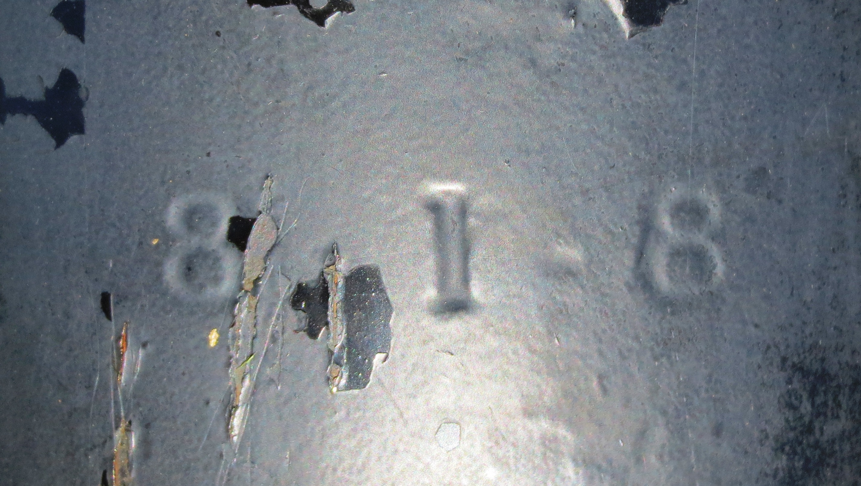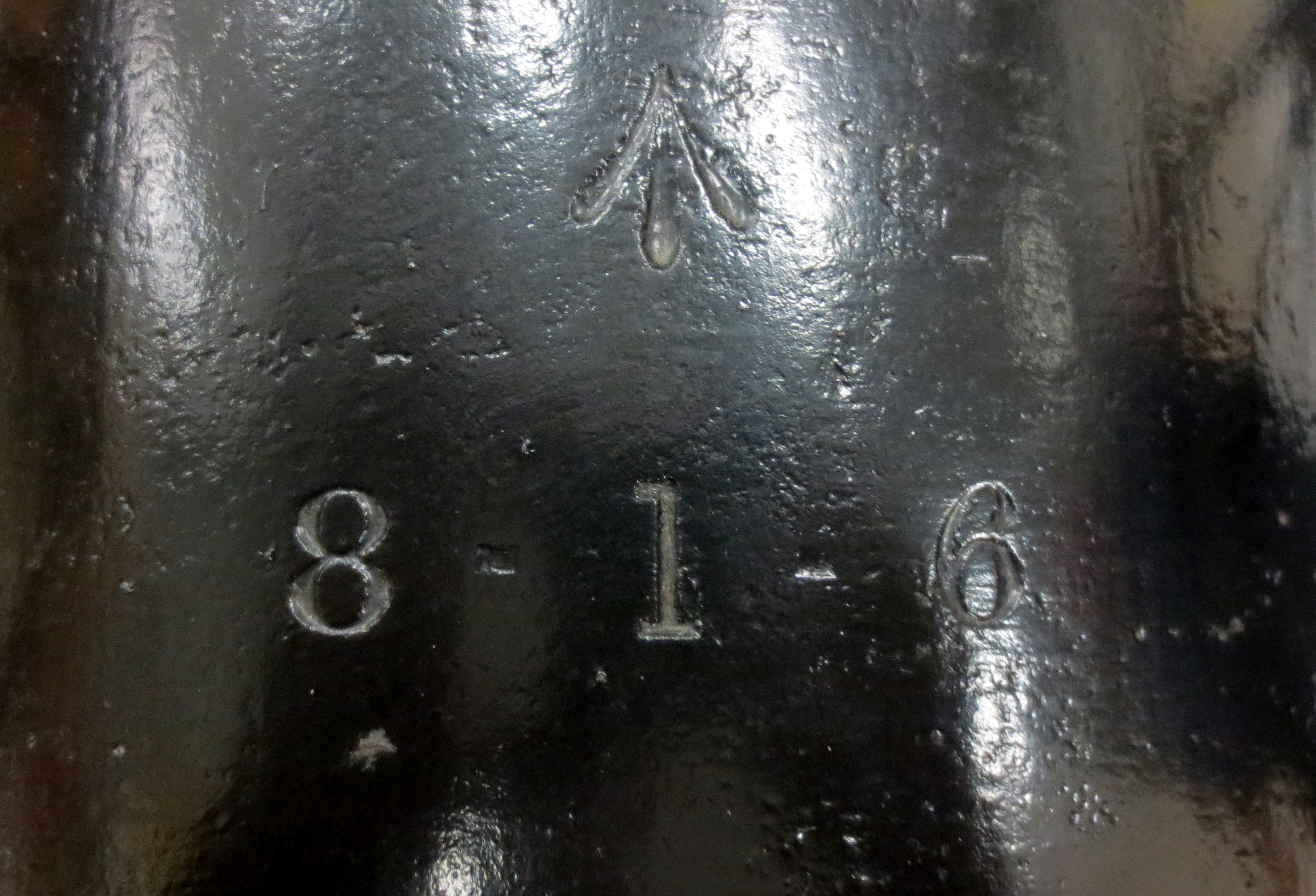 9-pounder 8-cwt Muzzleloading Rifle Mk. 1, weight 8-1-7 (931 lbs), RGF No. 628, I, 1874 on the right trunnion. This MLR is possibly associated with No. 15 Shefford-Granby Battery. This MLR is now in the hands of Les Matross. Its restoration and rehabilitation are in the hands of Normand Roberge and Tony Walsh.