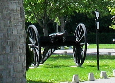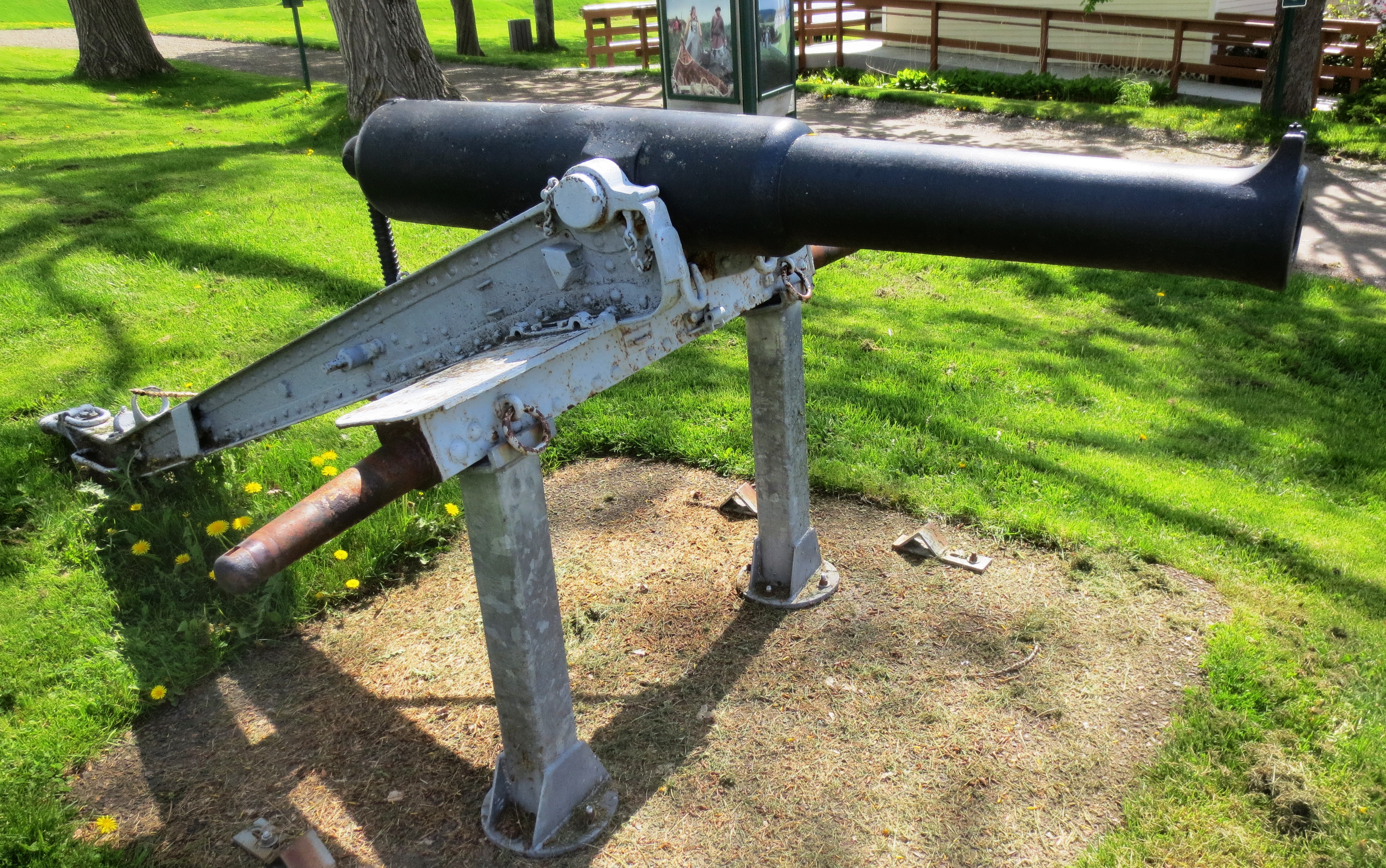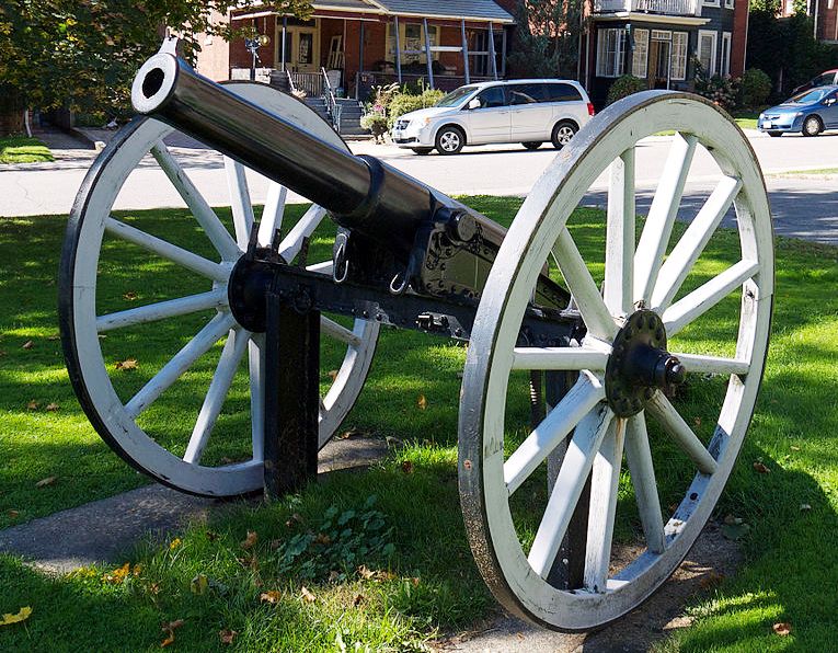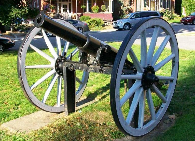 9-pounder 8-cwt Muzzleloading Rifle, weight >900 lbs, Reg. No. unknown. This type of gun was used in the NW Rebellion, 1885. Sir John Johnson House.