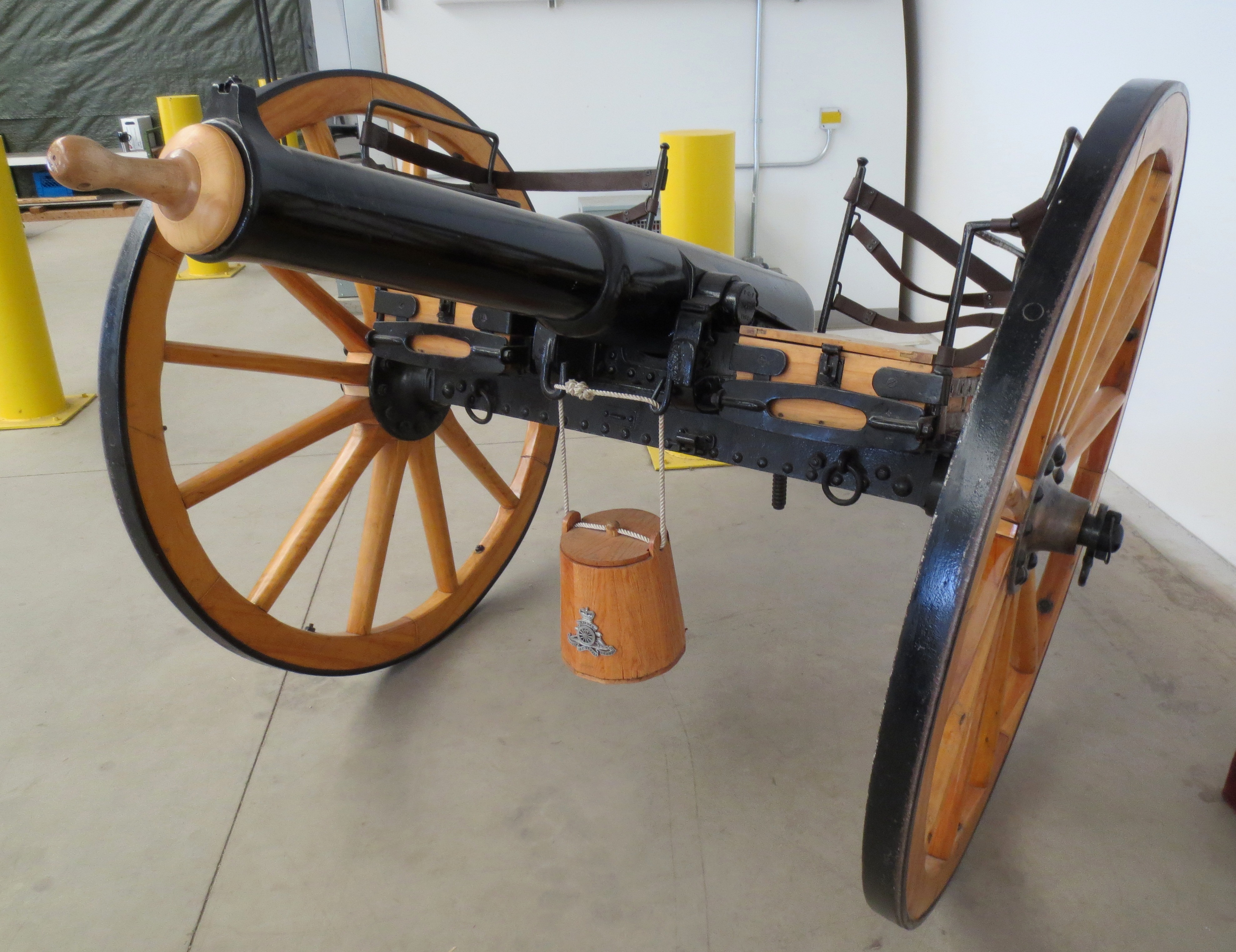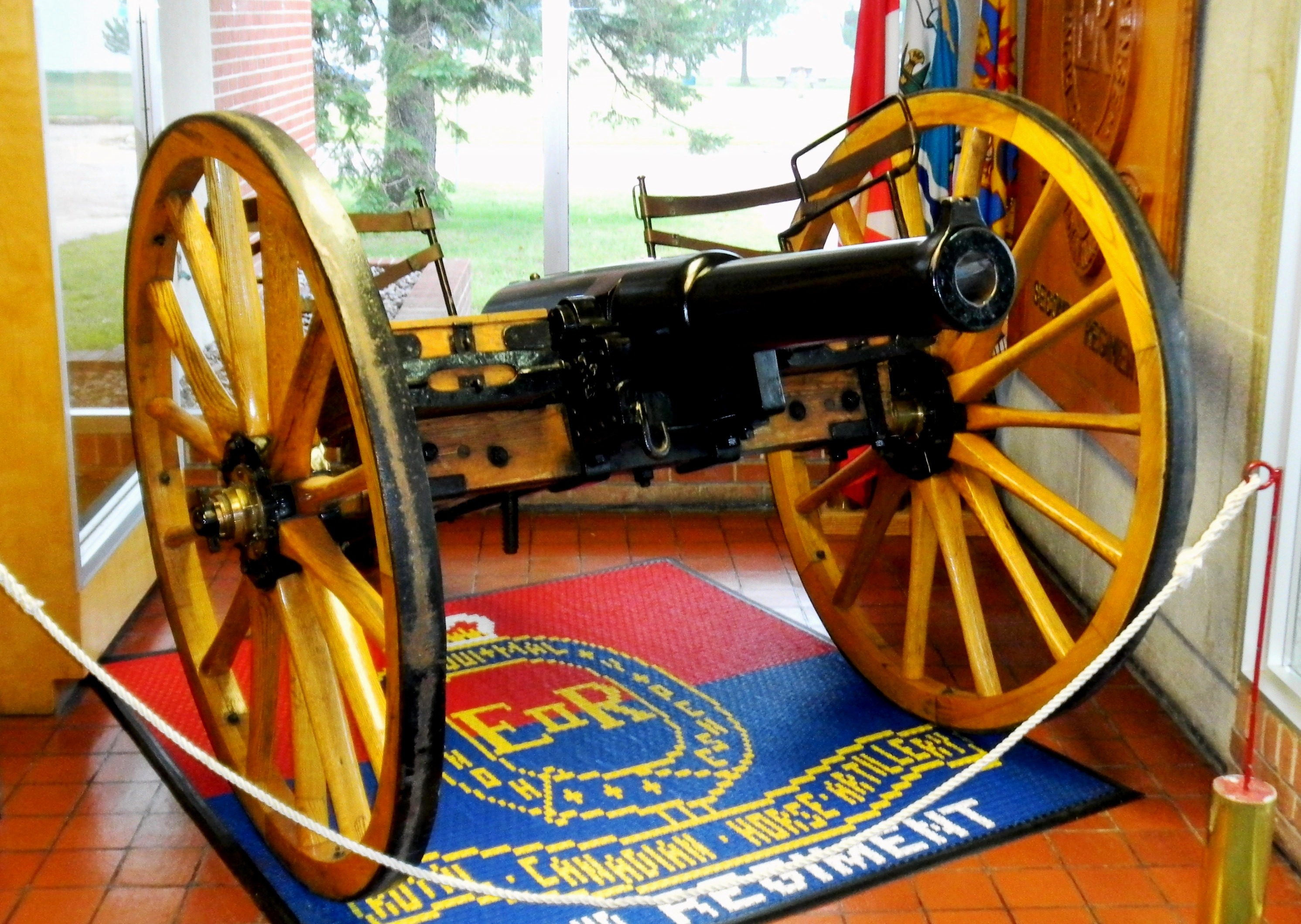 B Battery, having traded their own 9-pounders for two lighter but decrepit 7-pounders from the NWMP, met the enemy, Chief Poundmaker and his 200 man force at Cut Knife Creek. Once again the gunners fought with distinction. The North West Rebellion was quelled with A Battery participating in the final battle at Batoche. The campaign cost A and B Batteries a total of four killed and 19 wounded. Gunners’ Corpre and Beaudry of A Battery were recommended for the Victoria Cross for rescuing a wounded comrade at the battle of Batoche. (DND)The barrel was constructed from cast steel, with the breech area strengthened by shrinking a wrought iron sleeve over it. It used a three-groove rifling system, and the ammunition had studs to fit in the rifling. It could also fire case shot containing 110 musket balls with an effective range of 320 m (350 yd). (Doug Knight)
