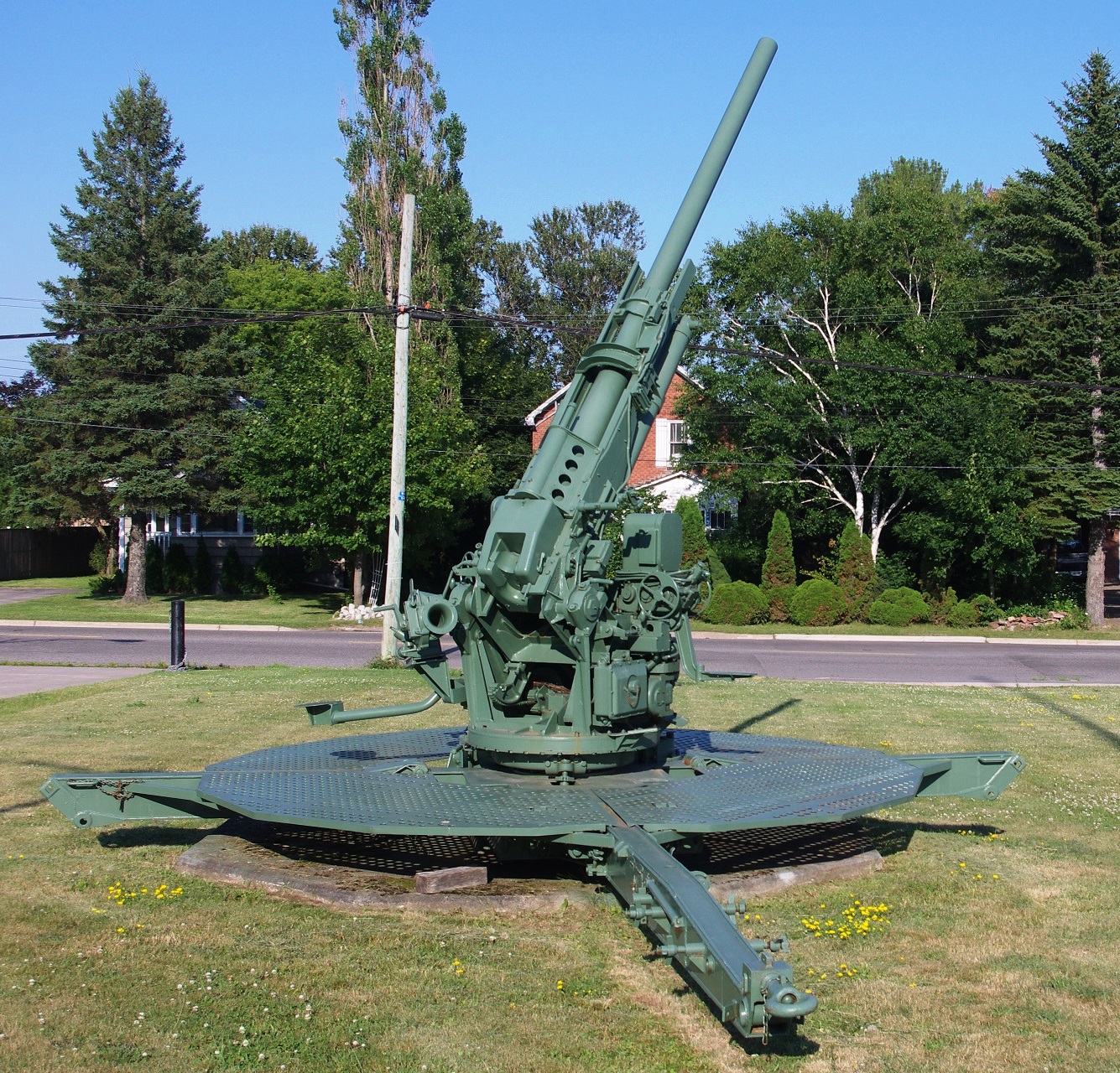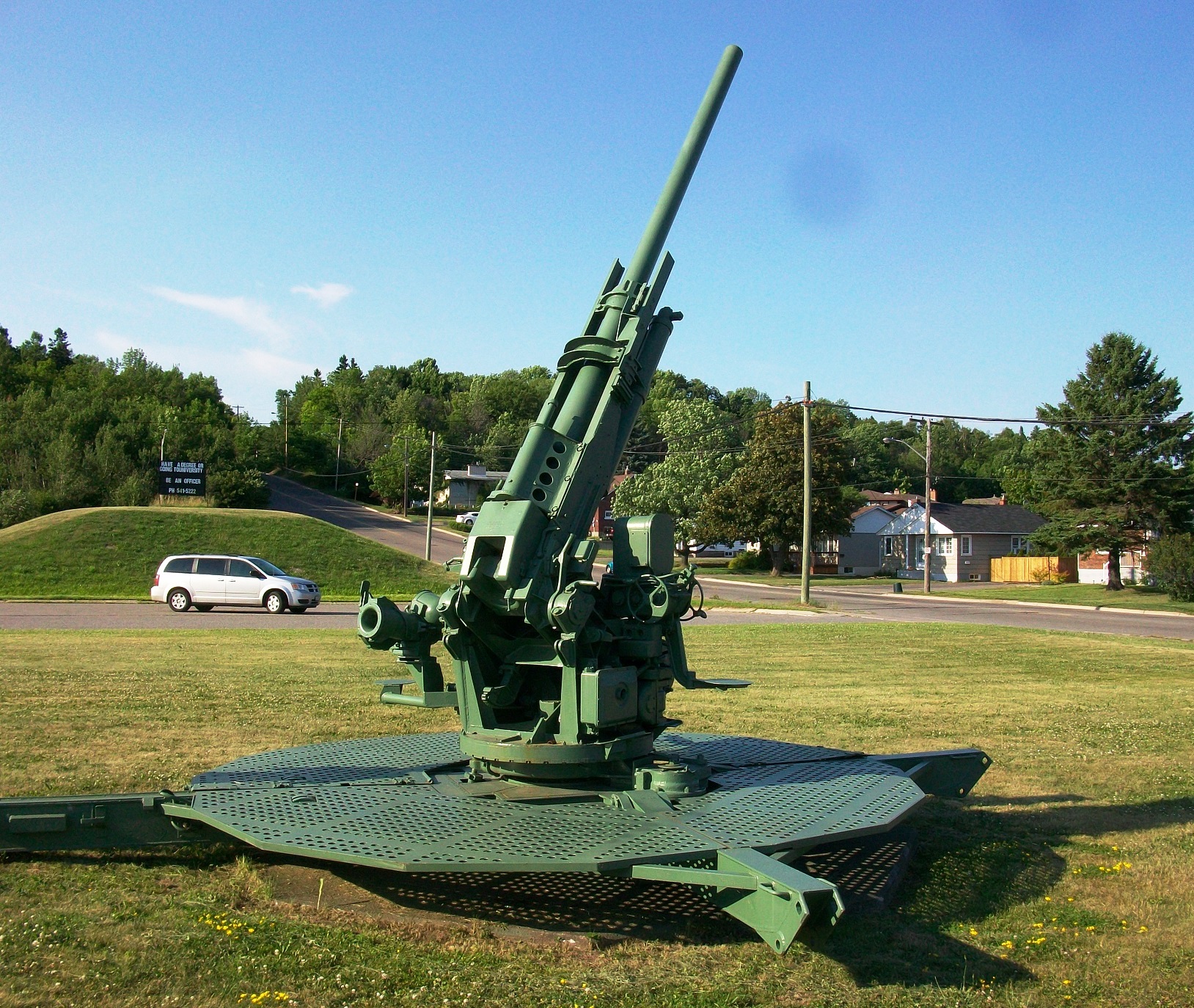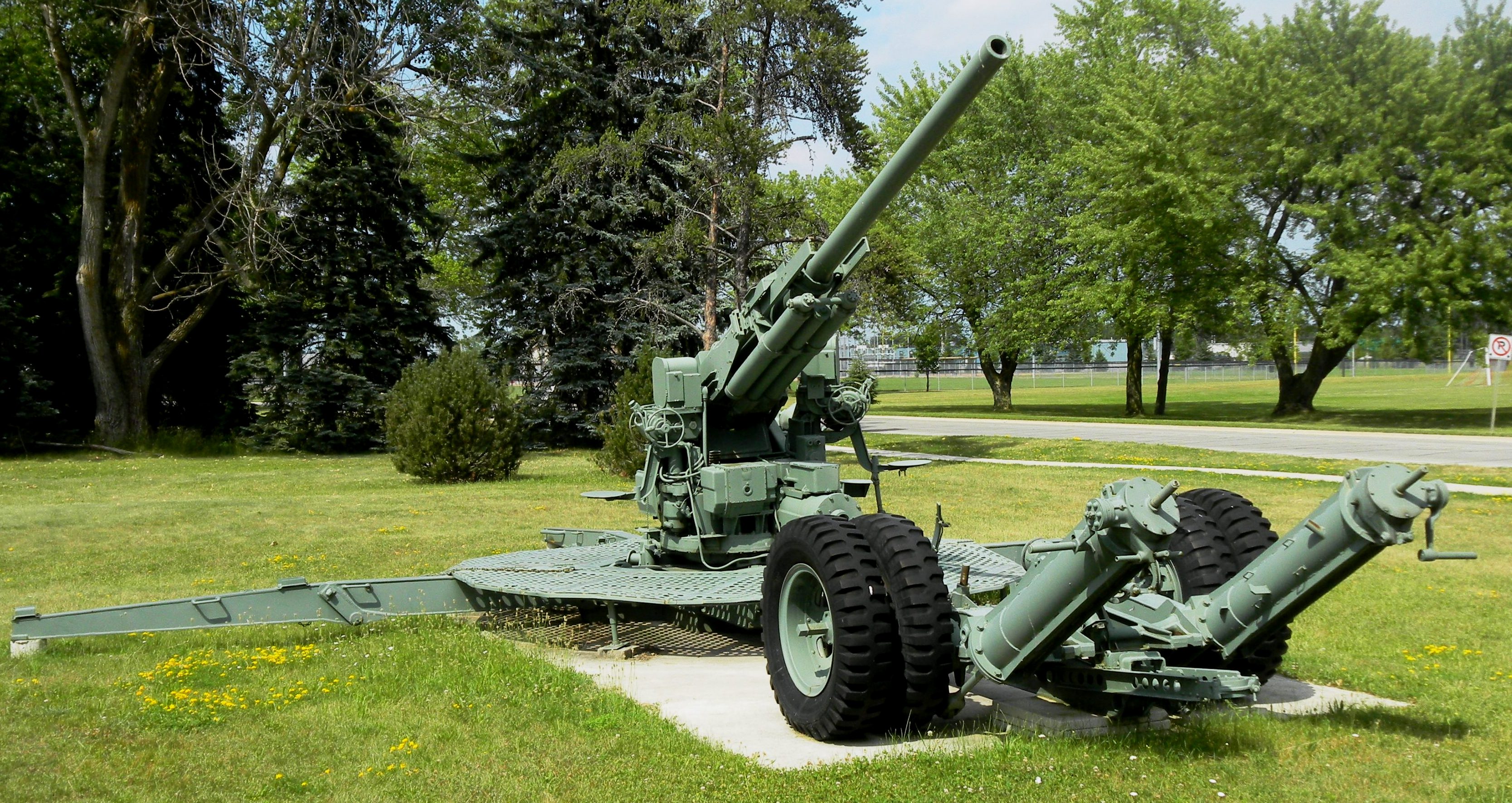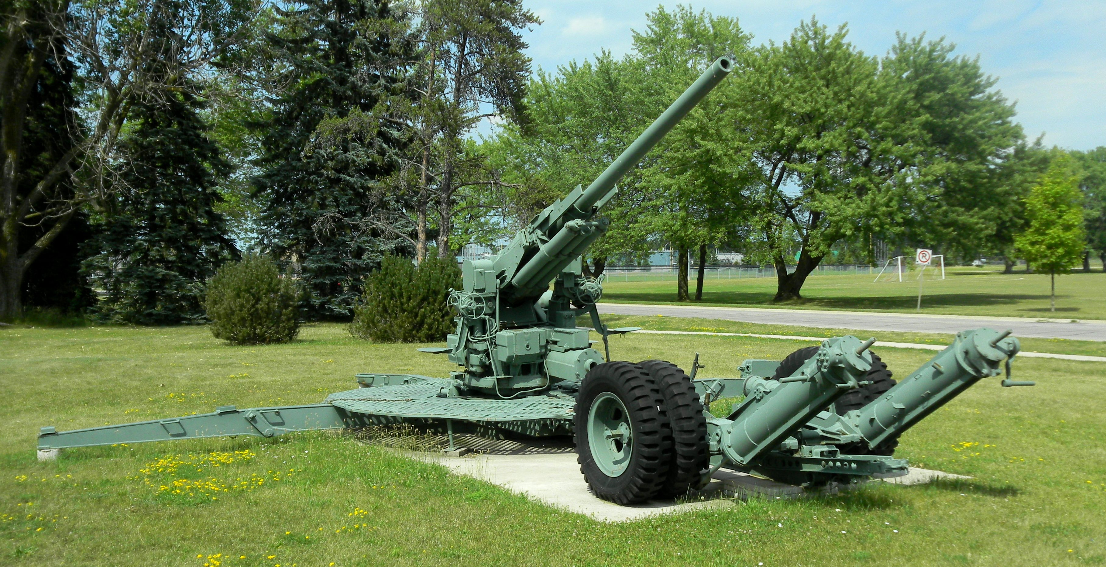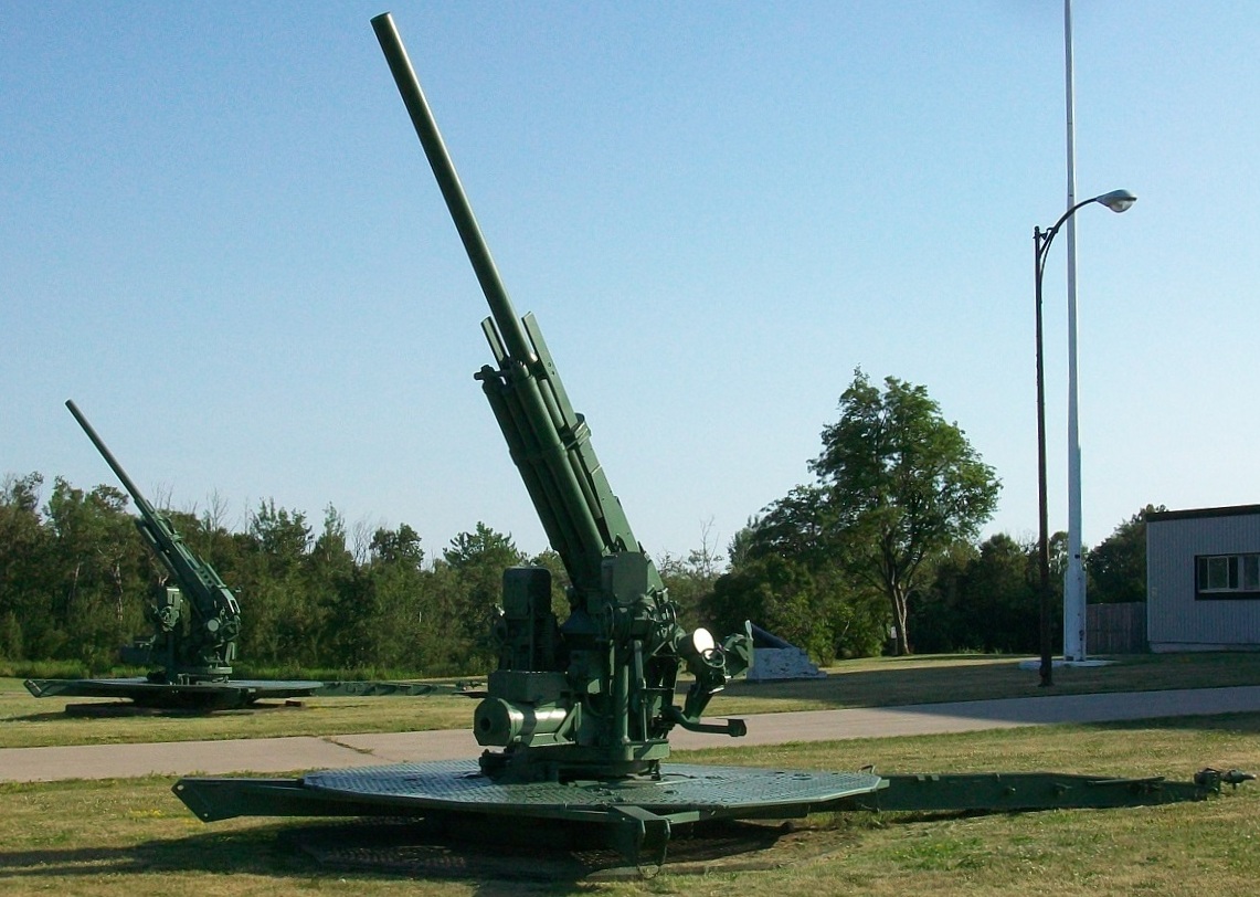 90-mm M1A1 Anti-Aircraft Gun, No. 1 of 2 on display in front of the Armoury at 1 Garrison Way, Sault Ste. Marie, Ontario.