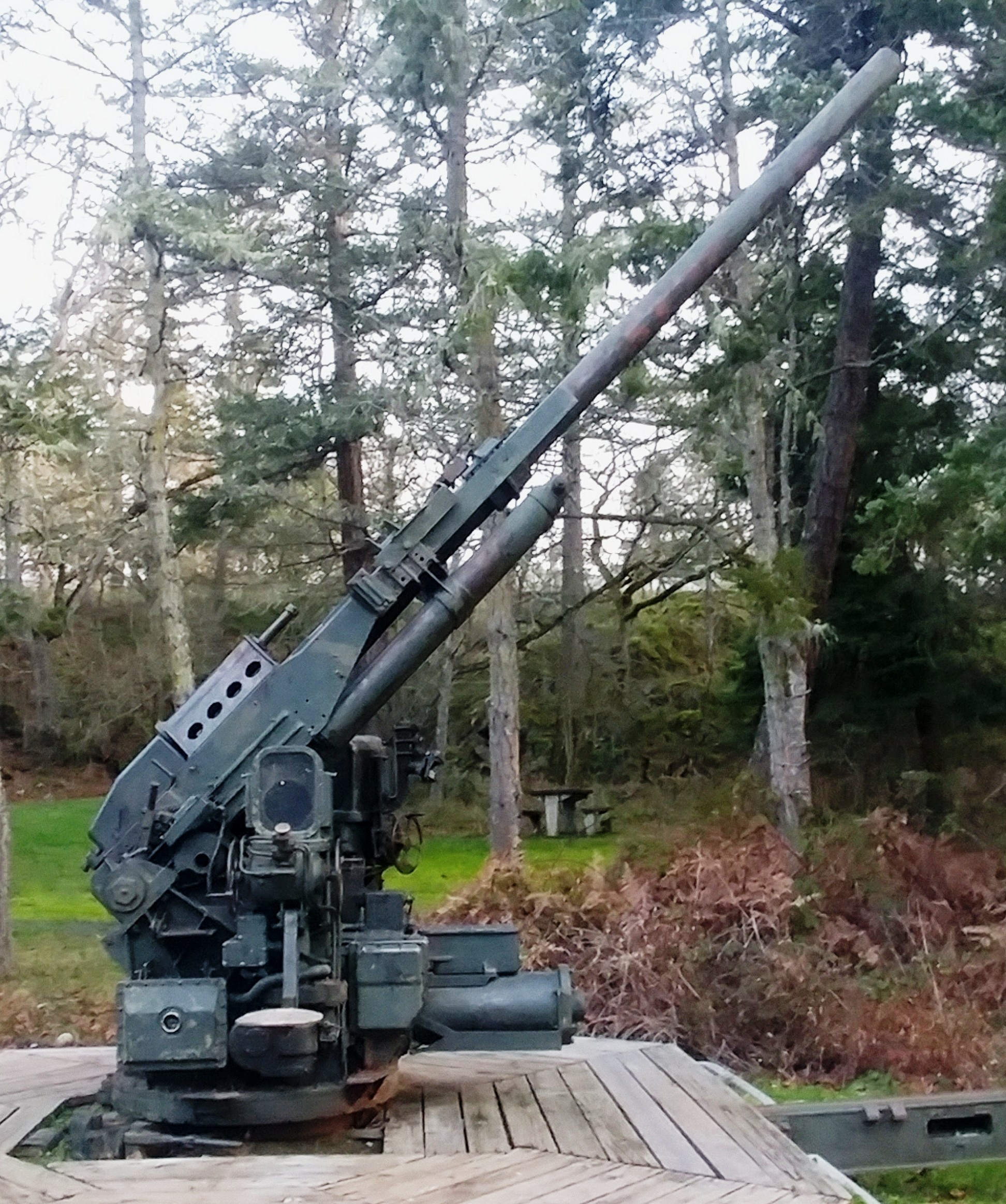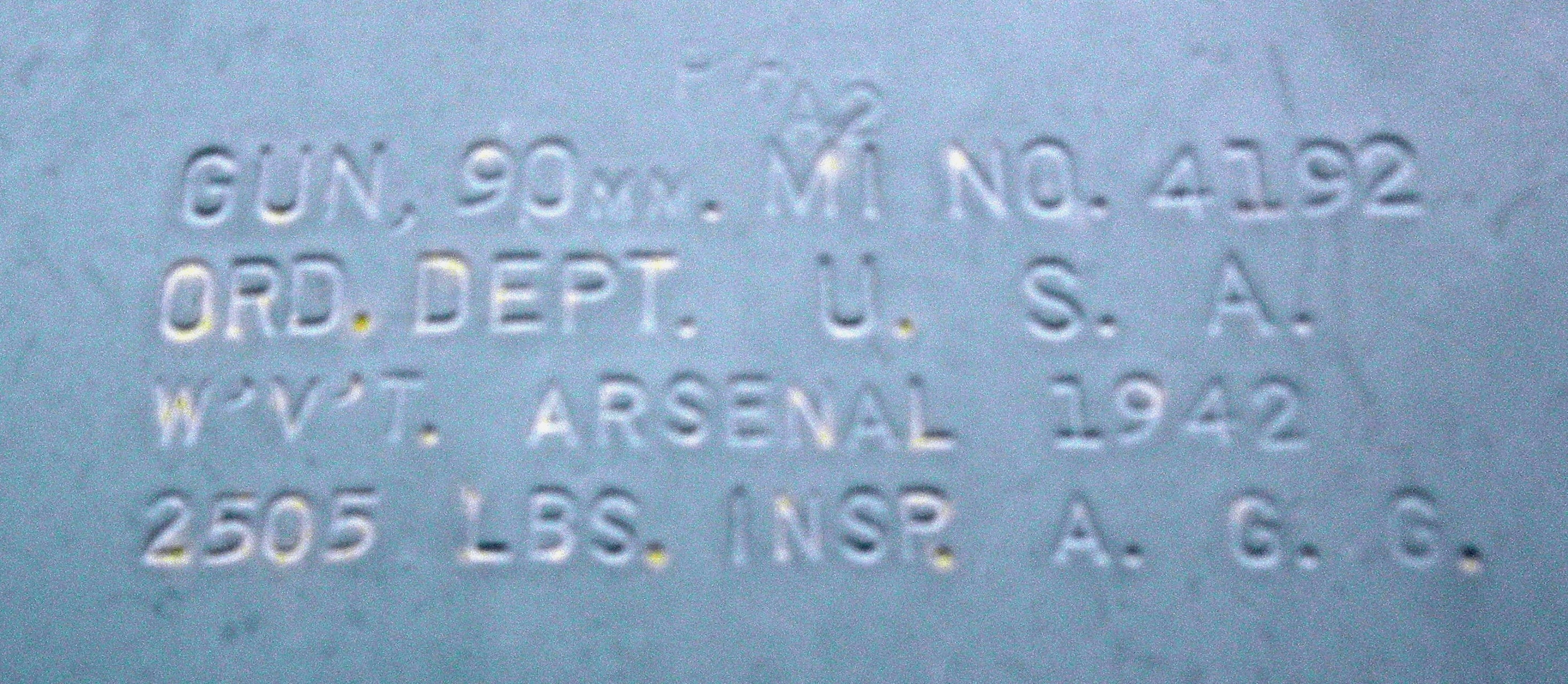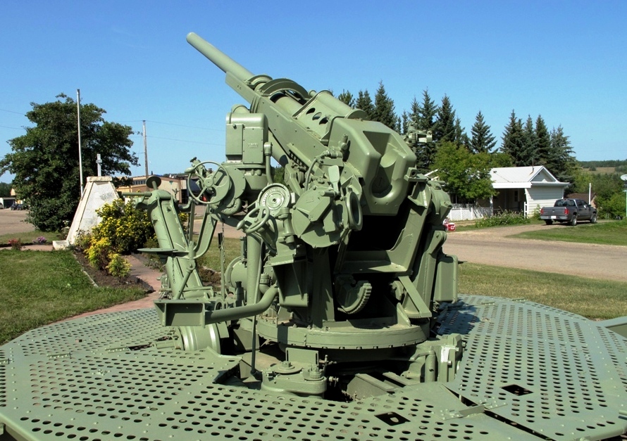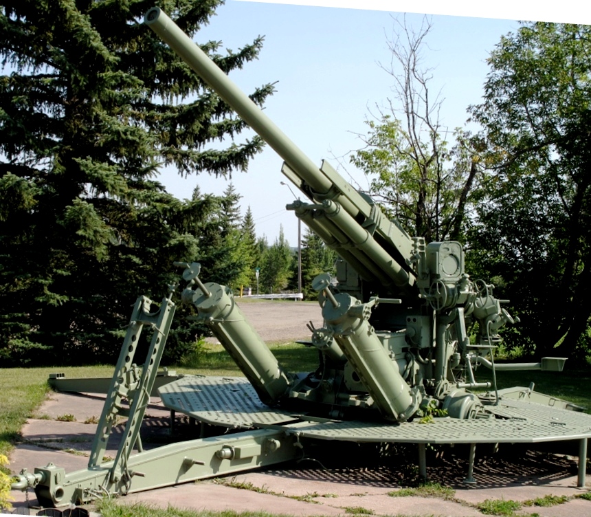 American 90-mm M1A1 Anti-Aircraft (Serial No. 2879).  This gun was obtained in 1967 from the West Coast  Royal Canadian Legion Branch No. 123, cenotaph on 50th Street, Sangundo, Alberta.