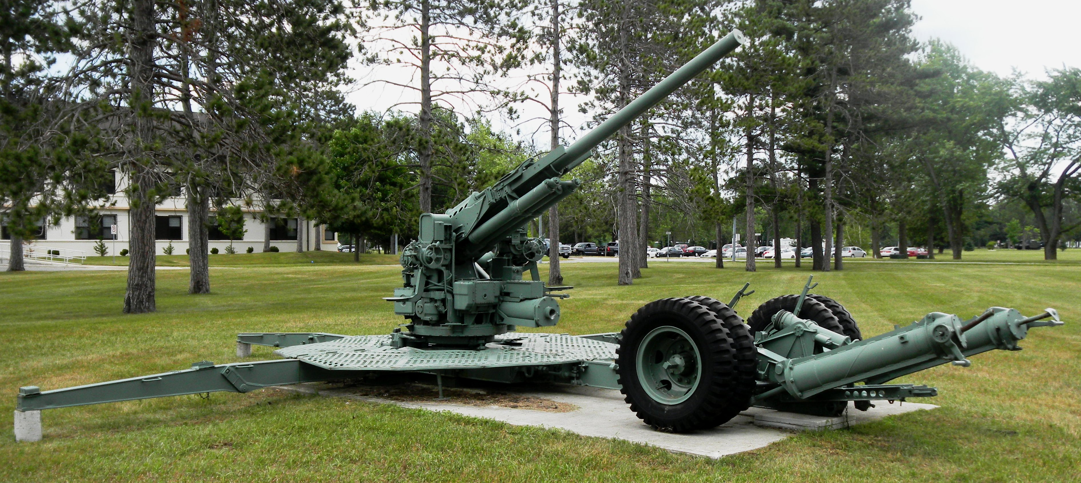 American 90-mm M1A1 Anti-Aircraft Gun, Serial No. 10154, West of the Base Accommodations Building, CFB Borden, Ontario.