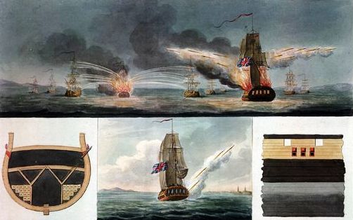 It was the use of ship-launched Congreve rockets by the British in the bombardment of Fort McHenry in the US in 1814 that inspired the fifth line of the first verse of the United States’ National Anthem, “The Star-Spangled Banner”: “and the rockets’ red glare, the bombs bursting in air”. HMS Erebus fired the rockets from a 32-pound rocket battery installed below the main deck, which fired through portholes or scuttles pierced in the ship’s side.