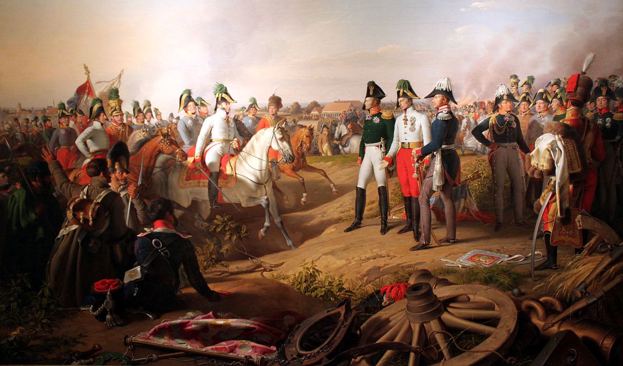 Alexander I of Russia, Francis II of Austria and Frederick III of Prussia meet after the battle. Painting by Johann Peter Krafft, Deutsches Historisches Museum Berlin.