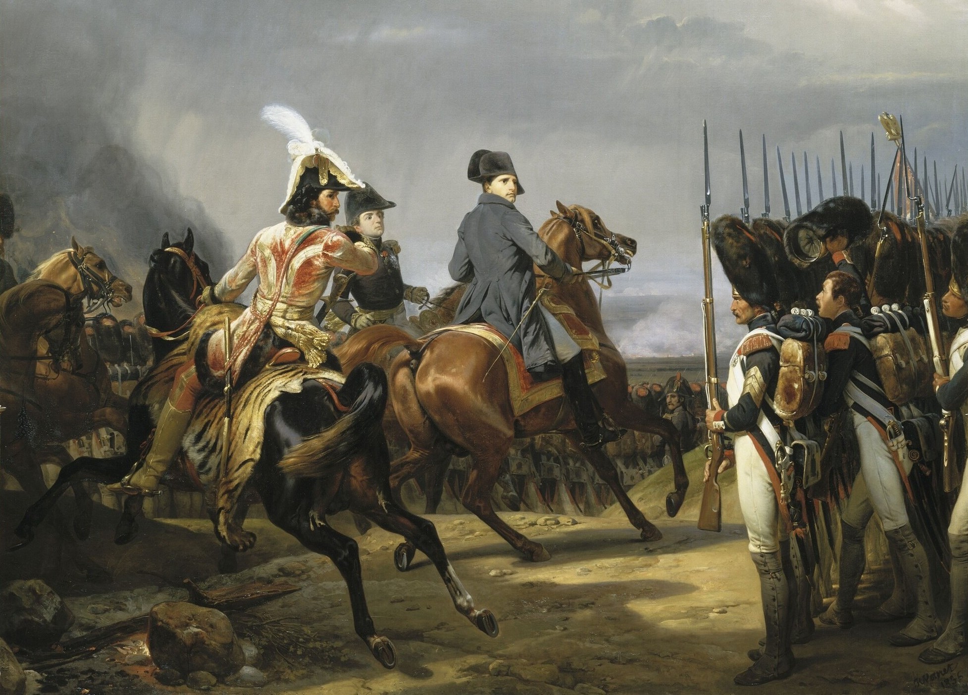 Napoleon reviews the Imperial Guard before the Battle of Jena, 1806, painting by Horace Vernet. (palace of Versaille Collection, MV 2768 ; INV 8367 ; LP 2246)