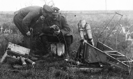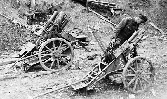 German trench mortars captured by Canadians, Canal du Nord, Oct 1918. (Library and Archives Canada Photo, MIKAN No. 3194349)
