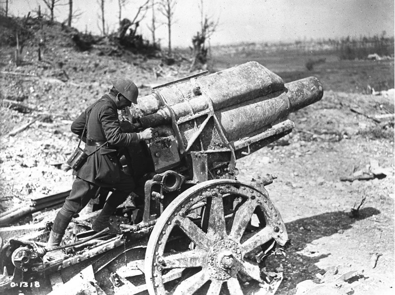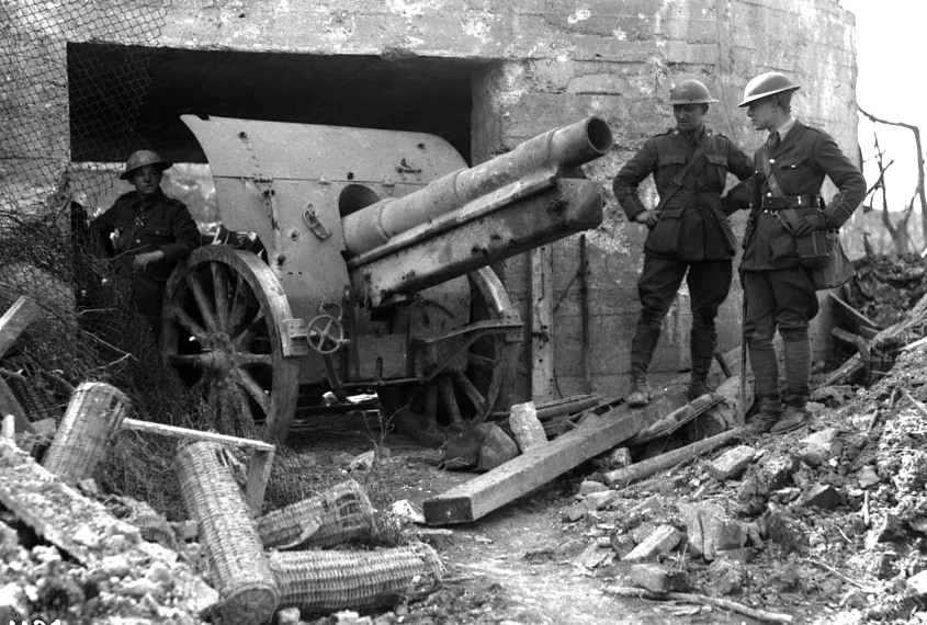 German First World War artillery captured East of Arras, Aug 1918. (Library and Archives Canada Photo, MIKAN No. 3397927)