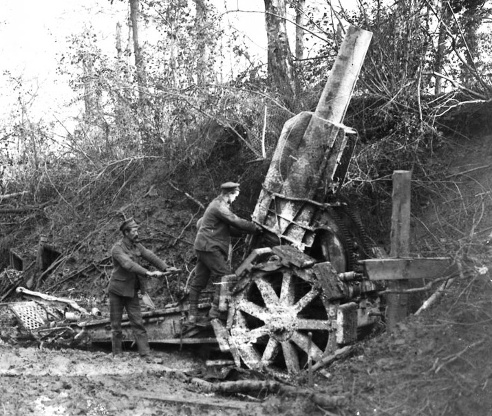 German Great War 21cm Morser, captured by Canadians during the advance East of Arras, Oct 1918.