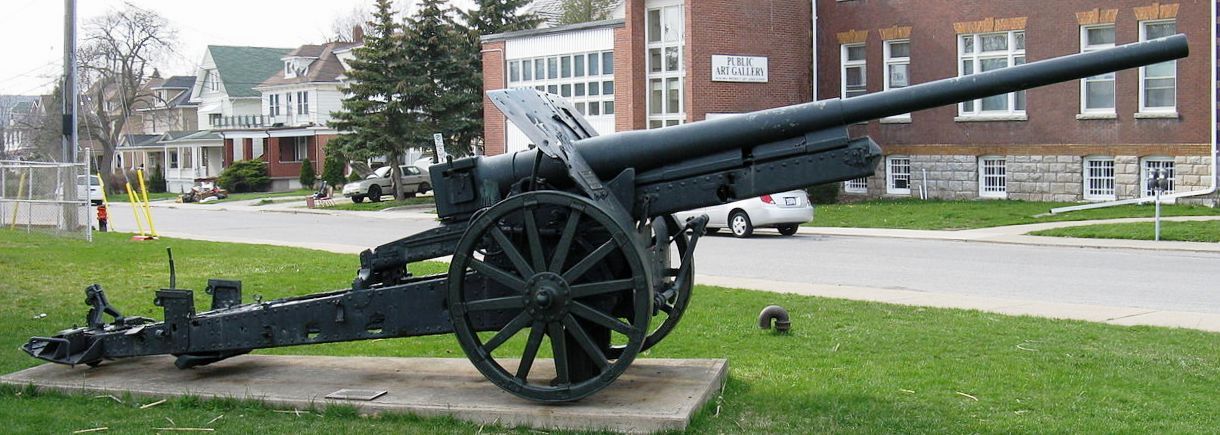 German First World War 10.5-cm Kanone 17 (10.5-cm K 17), (Serial Nr. 39), 1918. It was captured by the 3rd Battalion on 27 Sep 1918 near the Arras-Cambrai Road between Marquion and Raillencourt, France. Niagara Military Museum previously located with D Company, Lincoln & Welland Regiment (Victoria Street) Armoury, 5049 Victoria Ave.