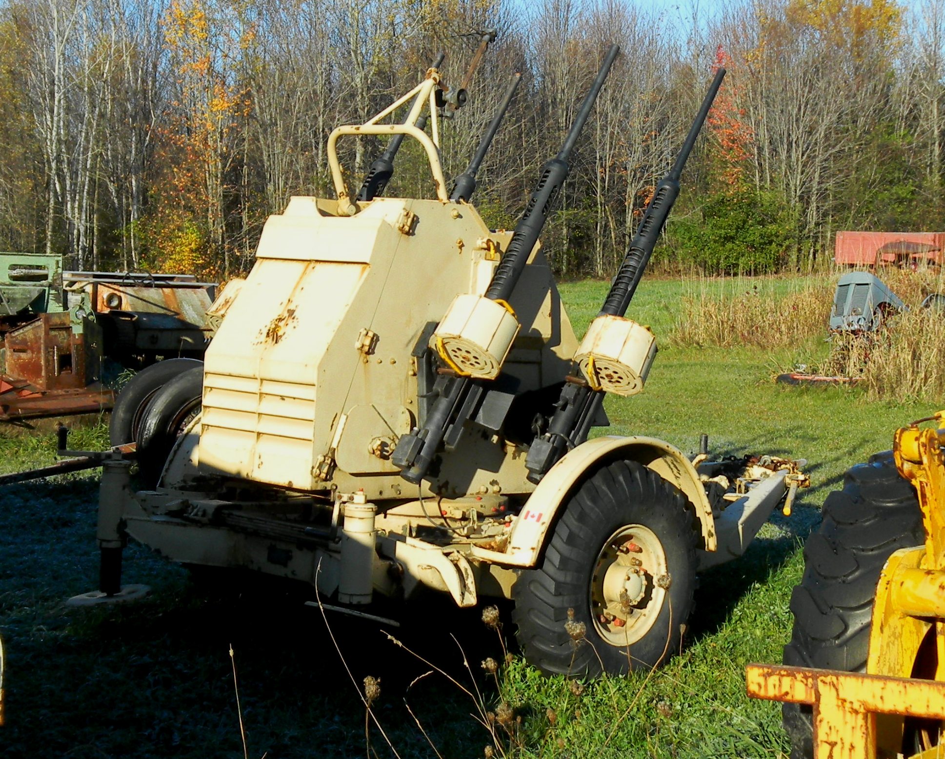 Polsten 20-mm Quadruple Anti-Aircraft Gun Mk. I on a wheeled Mounting C Mk. I, (Serial No. 15939), Canadian War Museum, Ottawa, Ontario.